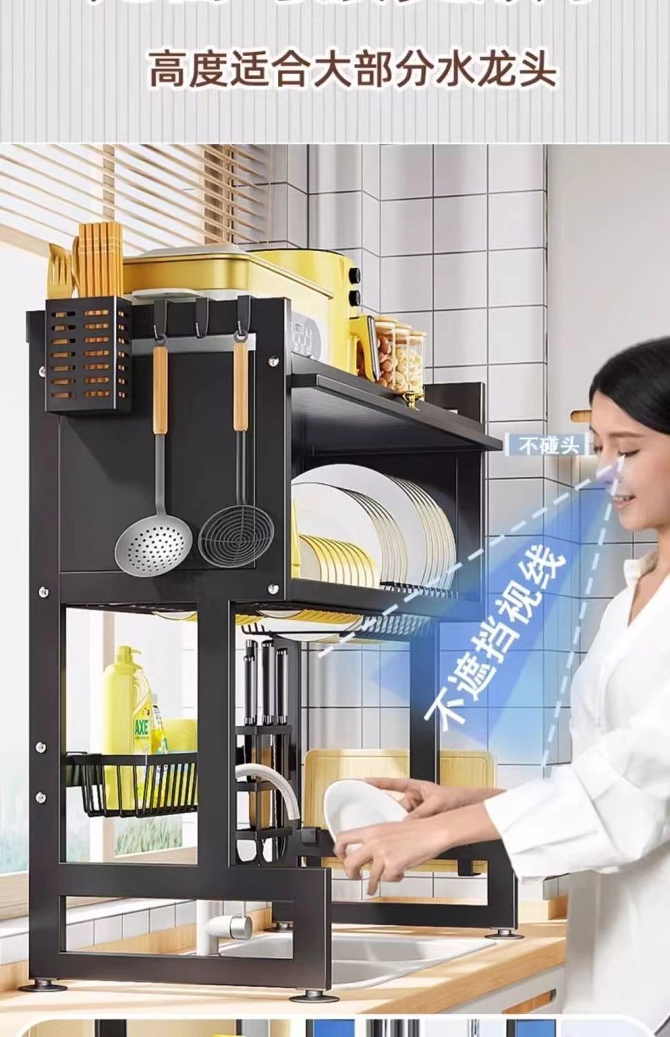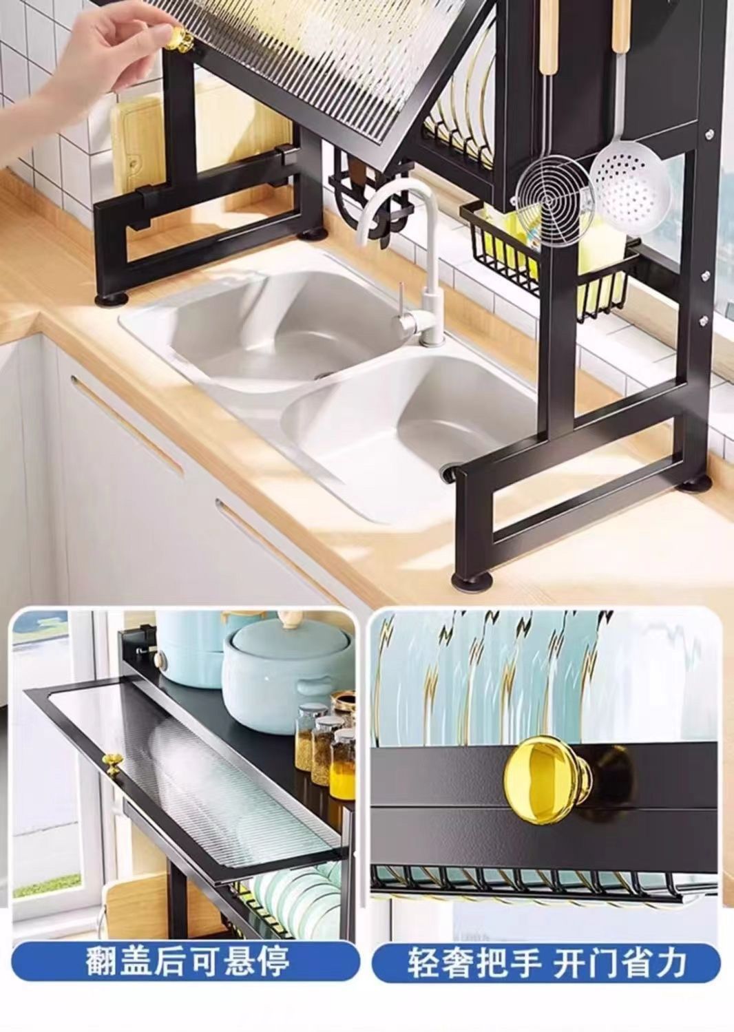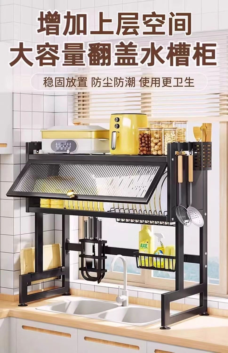 水槽置物架厨房洗碗槽水池防尘碗柜台面收纳餐具多功能储物沥水架