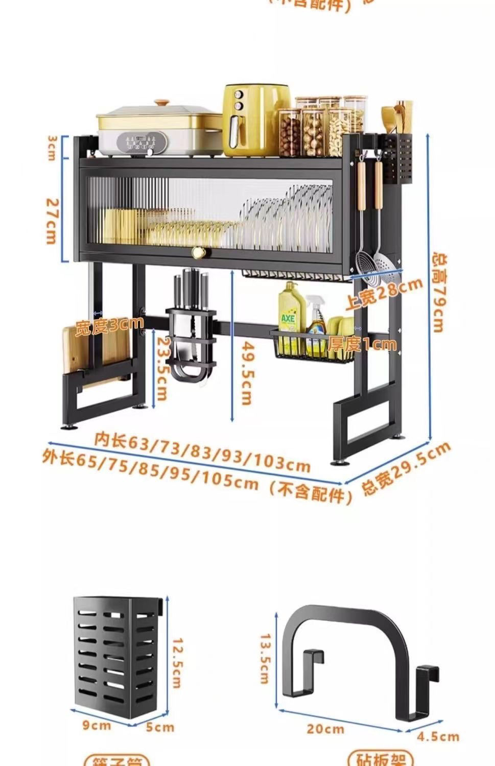 • 국경 간 폭발 싱크대 보관함 75 롱 블랙 + 액세서리 풀 세트 + 후크 6개
