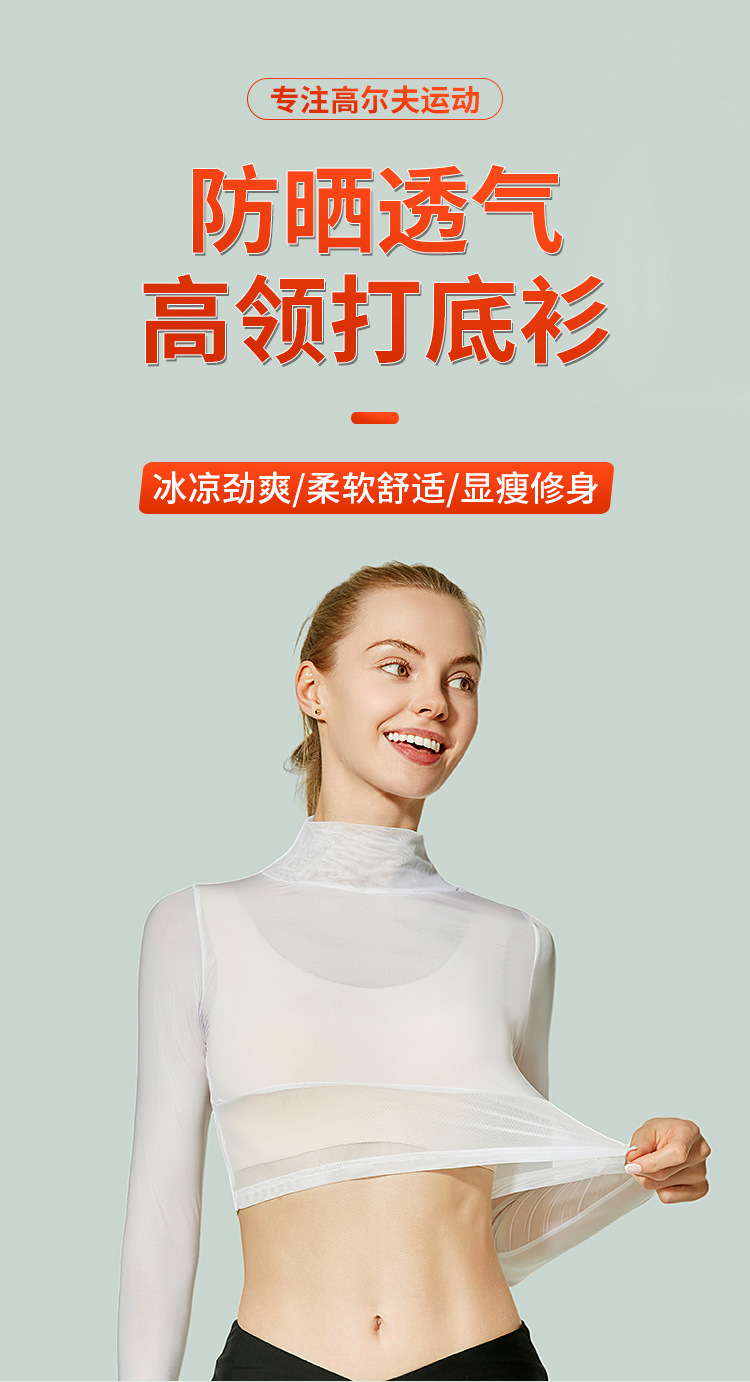 MG 골프 베이스 레이어 자외선 차단 하이 칼라 아이스 실크 시원한 느낌 속건성 통기성 고탄성 경량 슬림 자외선 차단 의류 여름스토어 가기