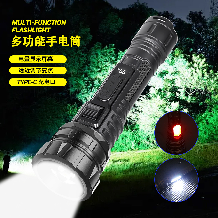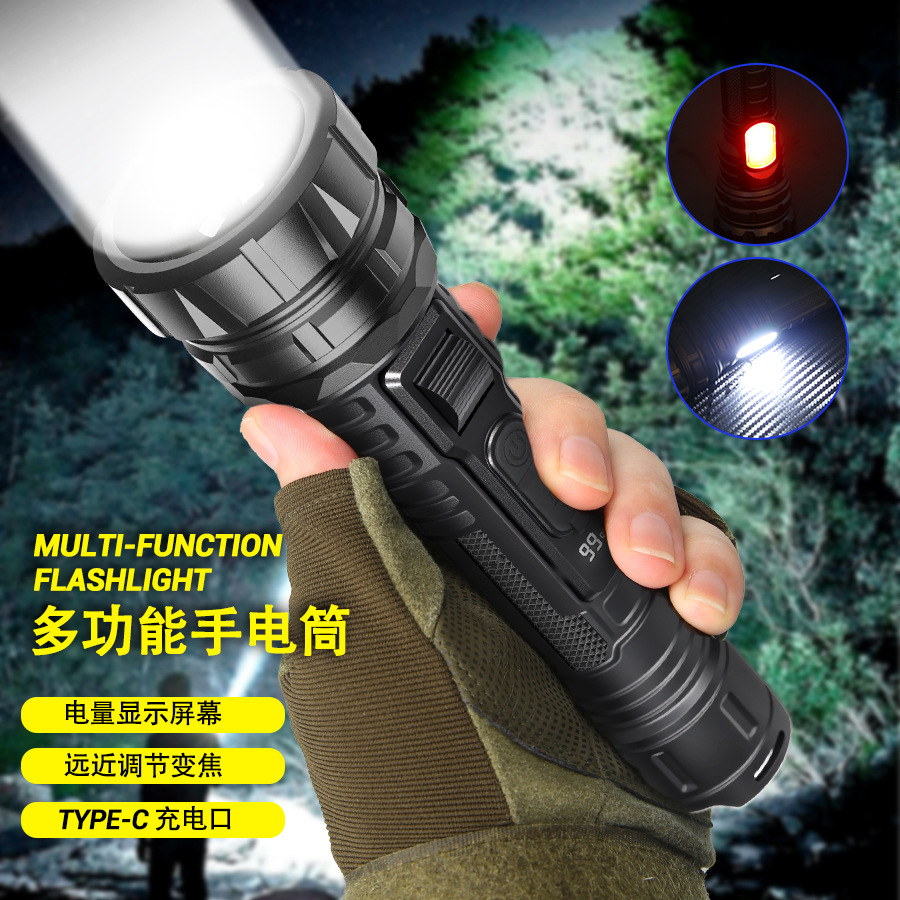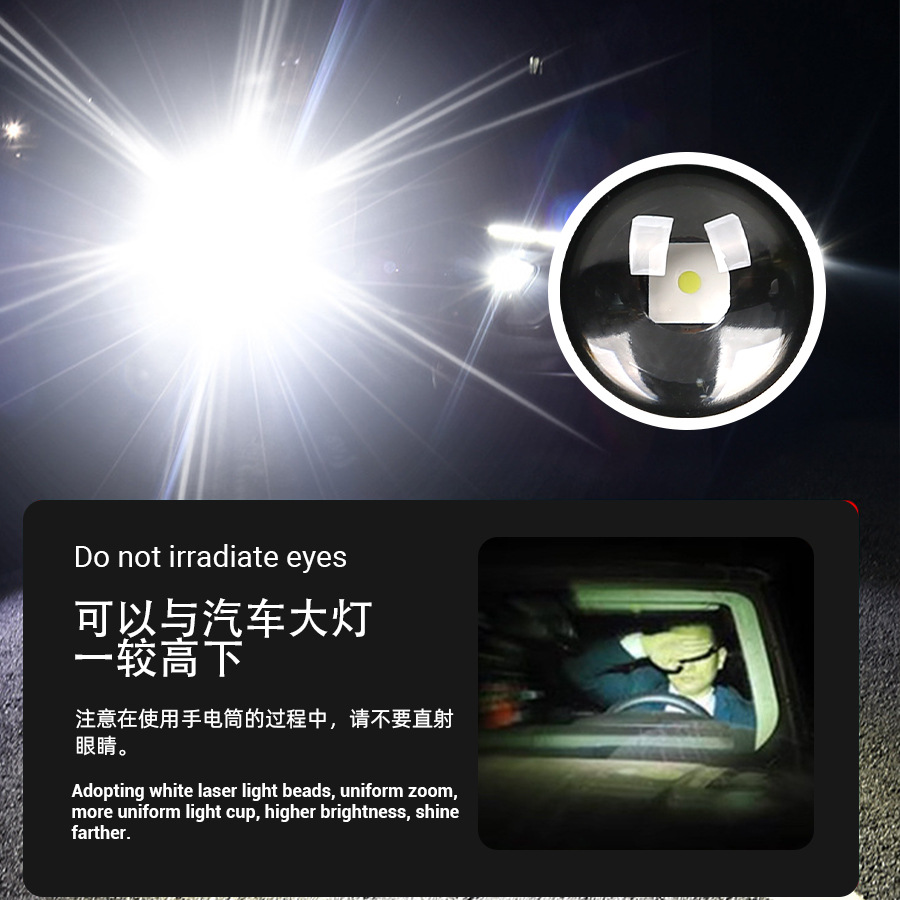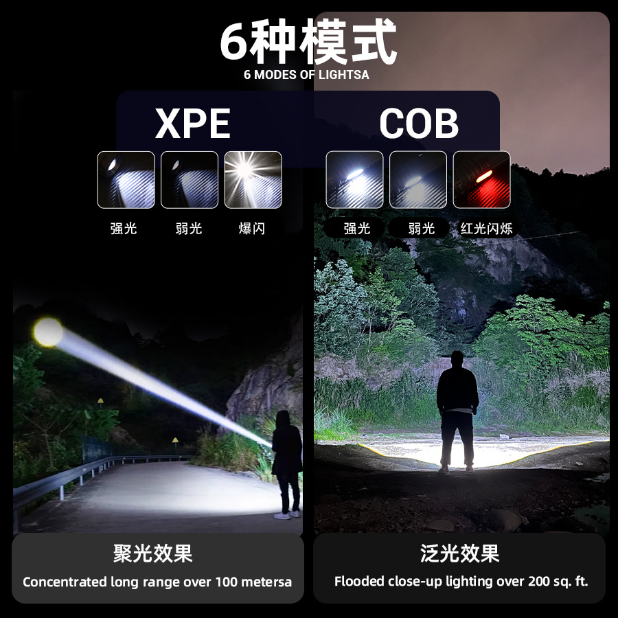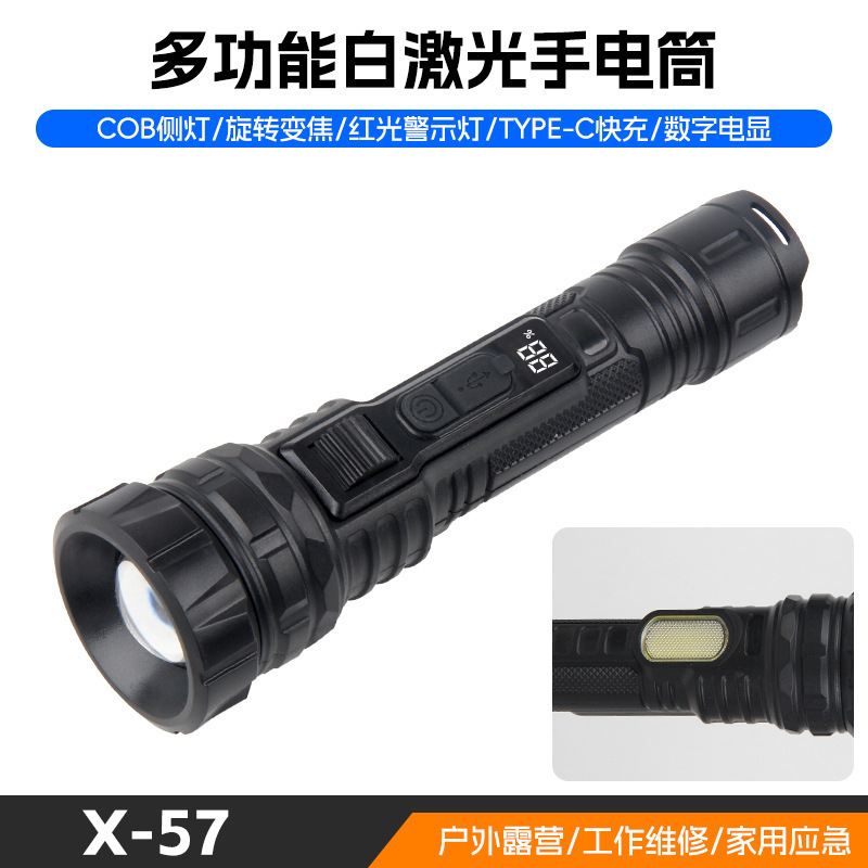 LED 손전등, 강력한 빛, 레이저 포, 야외용 충전식, 긴 배터리 수명, 다기능 휴대용 비상 COB 작업등