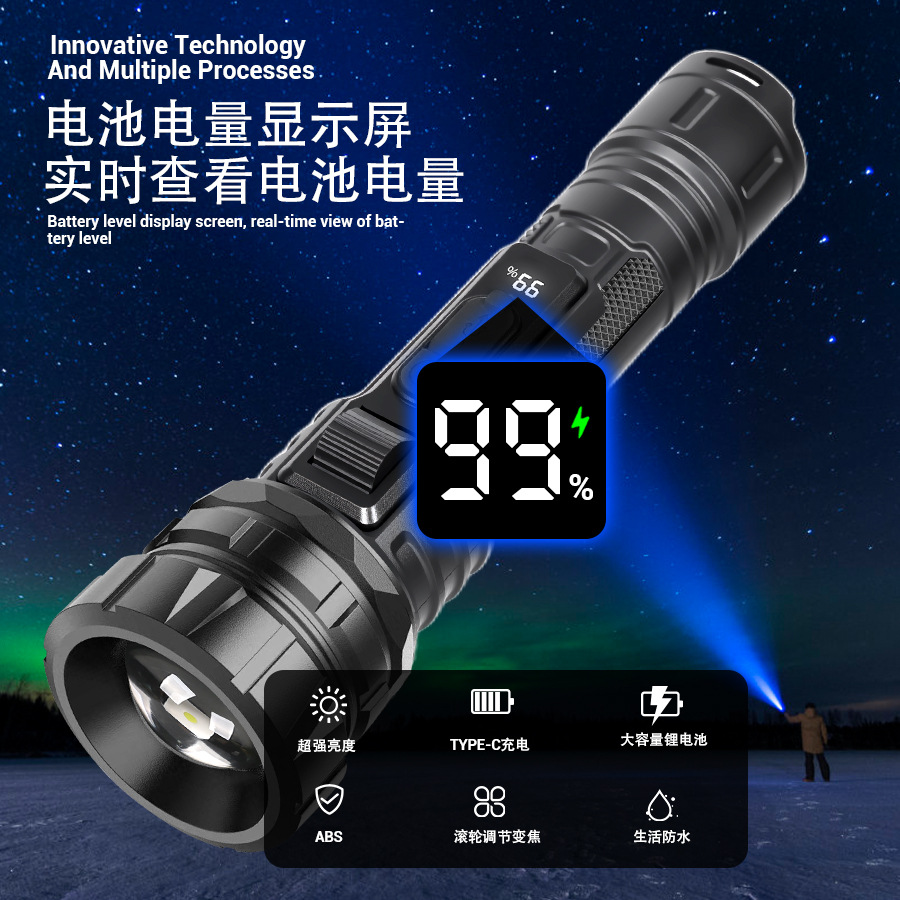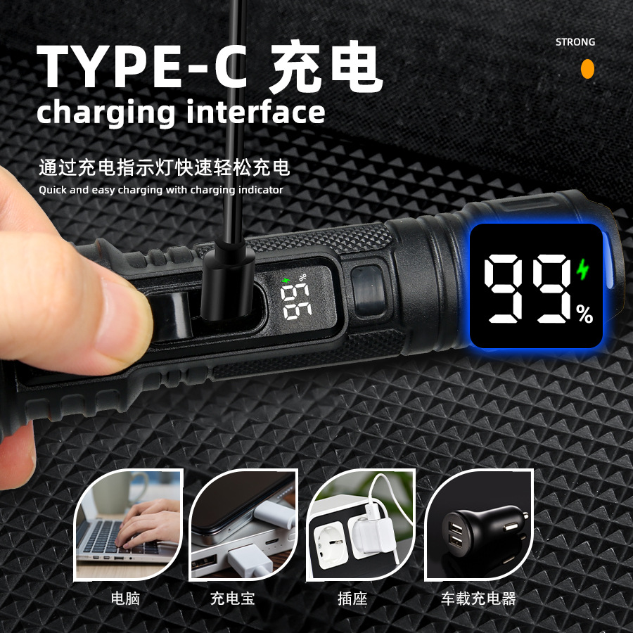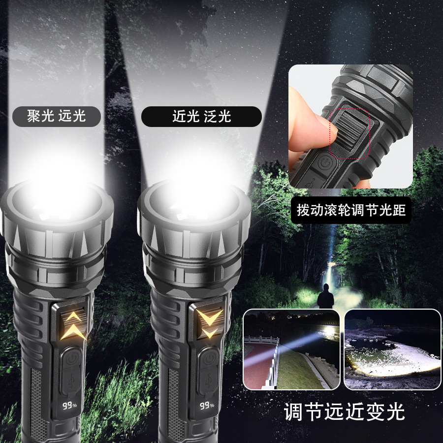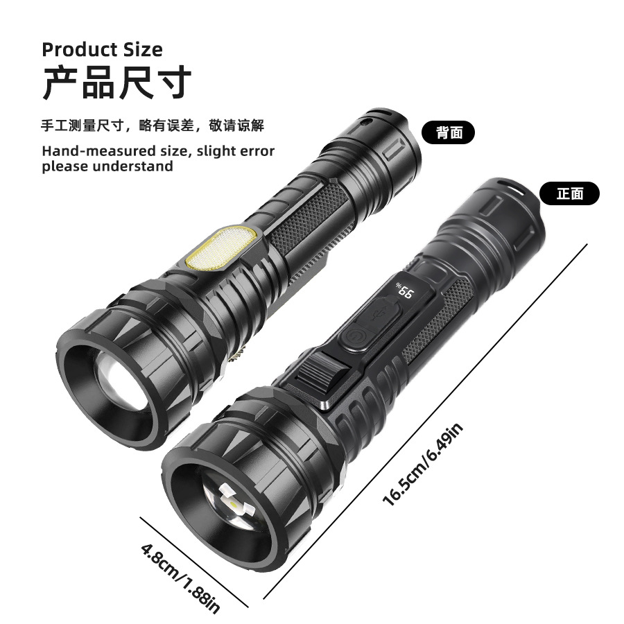 LED 손전등, 강력한 빛, 레이저 포, 야외용 충전식, 긴 배터리 수명, 다기능 휴대용 비상 COB 작업등