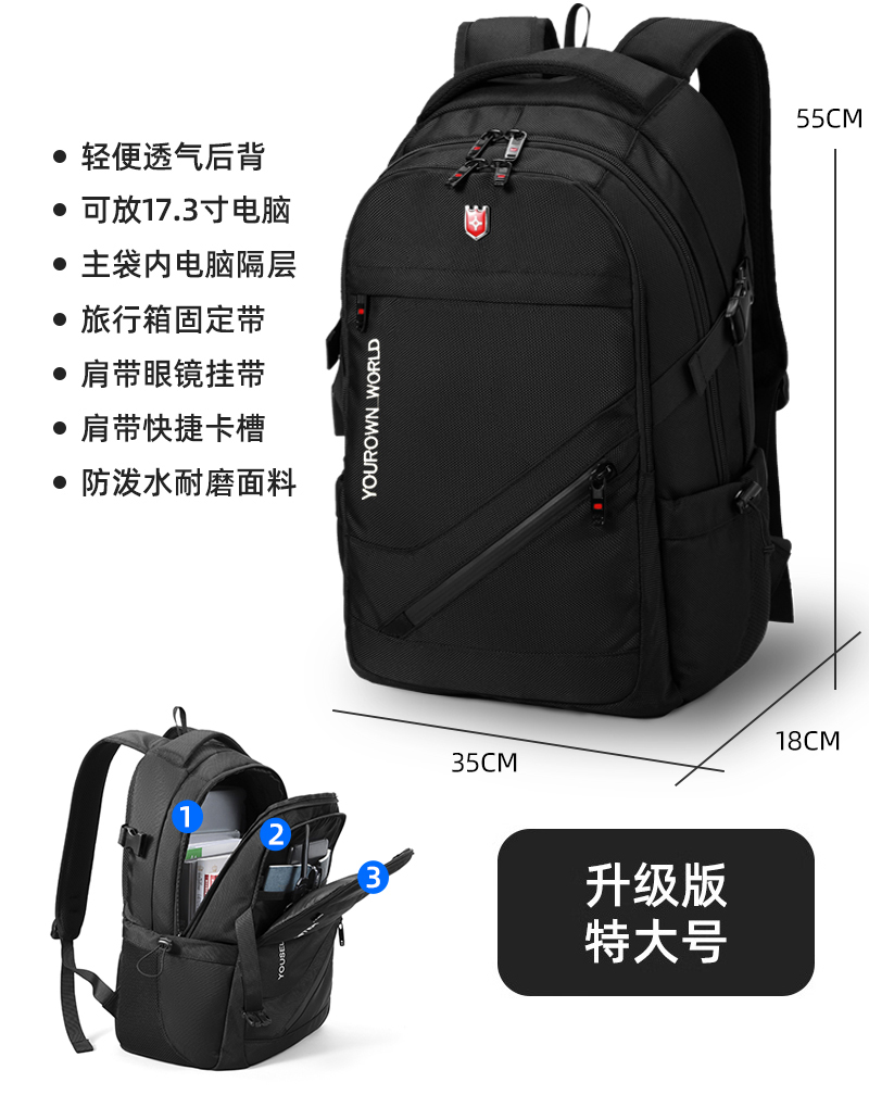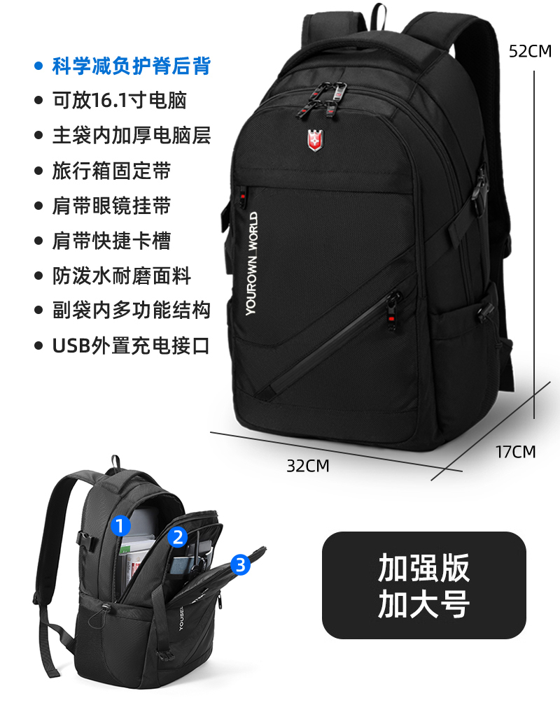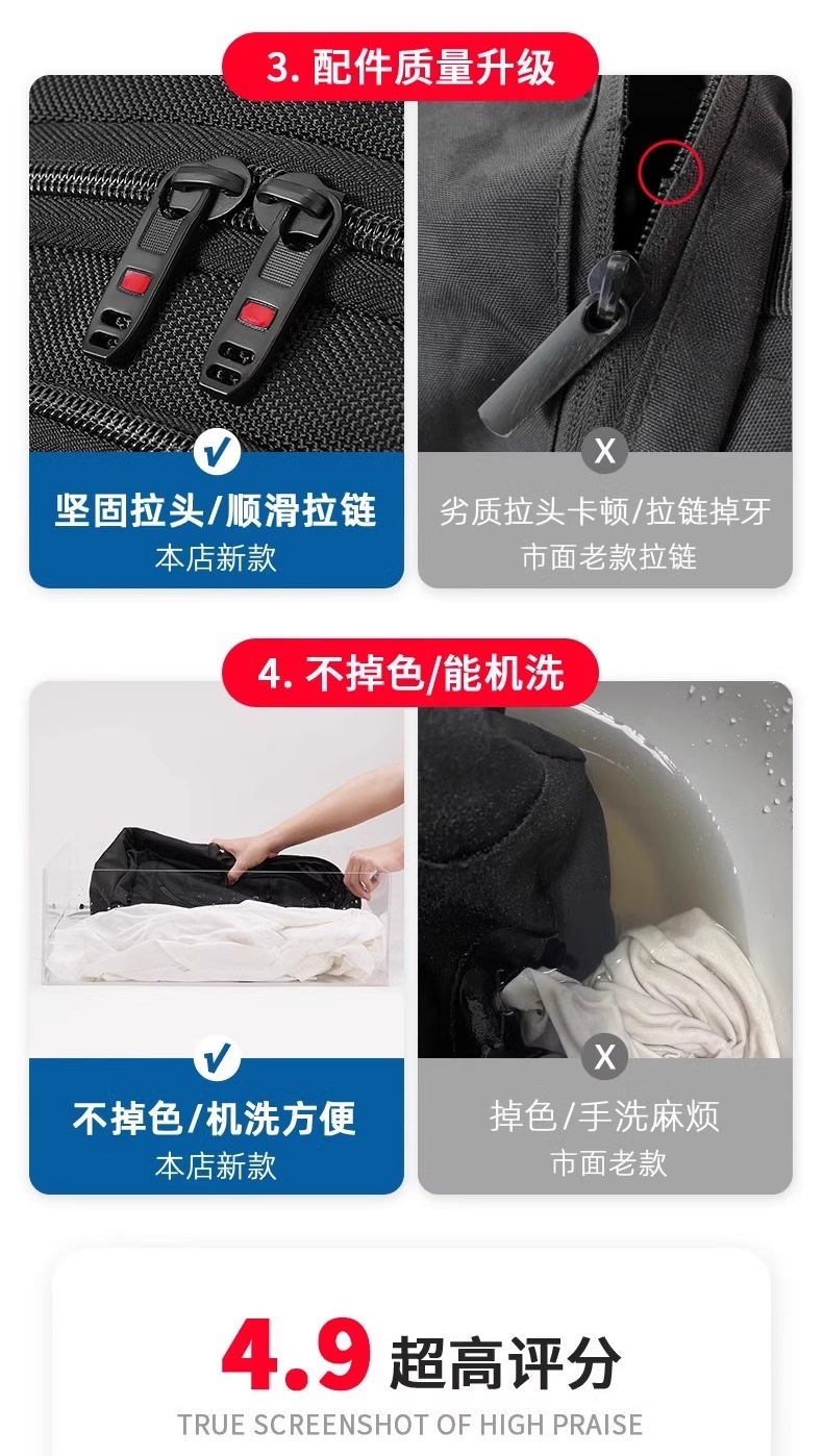 • 향상된 버전 [초대형 모델 - 검정색] 용량 업그레이드/USB 외부 충전 인터페이스 포함/두꺼워진 발수/초내마모성
