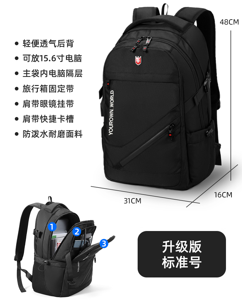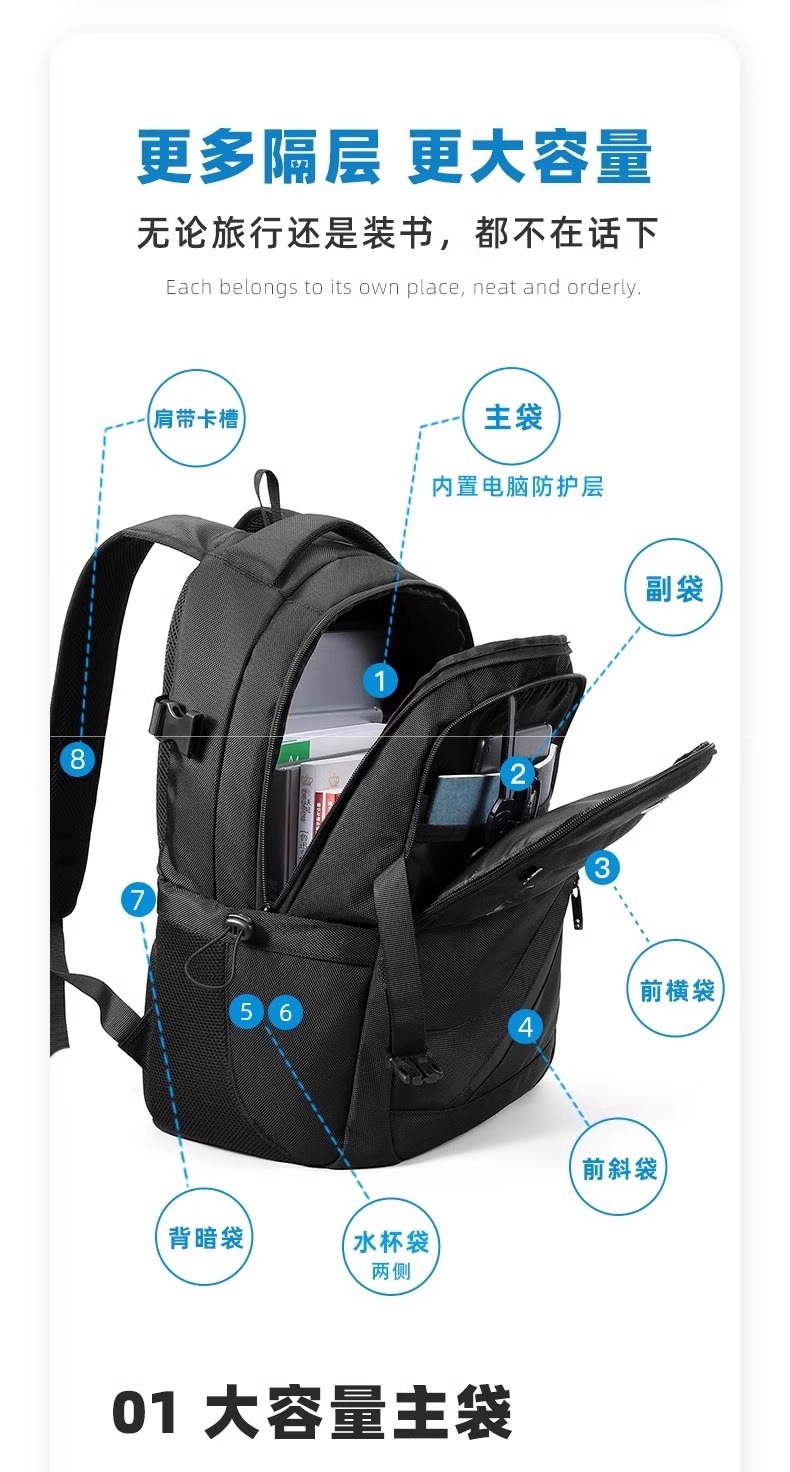 • 향상된 버전 [확대 모델 - 검정색] 용량 업그레이드/USB 외부 충전 인터페이스 포함/두꺼워진 발수/초내마모성