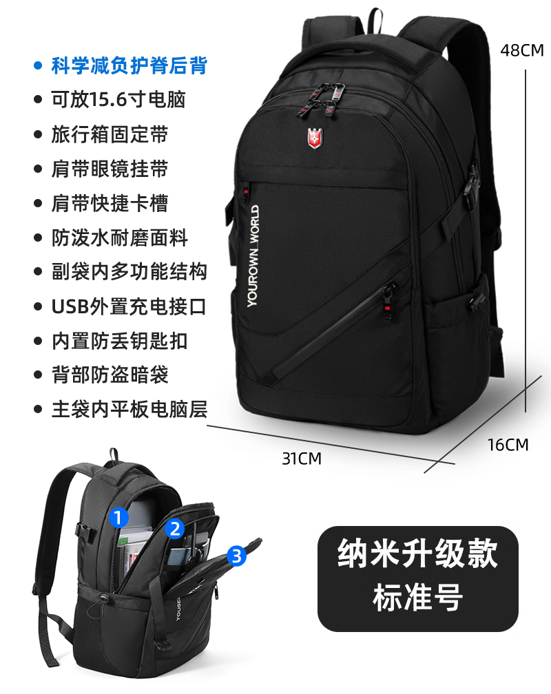• 나노 업그레이드 버전 [확장 모델 - 블랙] [대용량 업그레이드/USB 외부 충전 인터페이스 포함/스크래치 방지 원단/두꺼워진 발수/초내마모성]