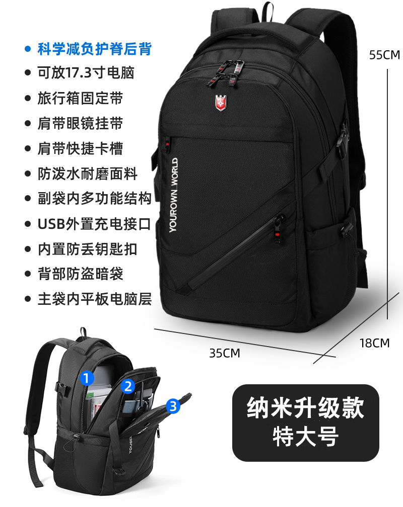 • 나노 업그레이드 버전 [특대형 모델 - 블랙] [용량 업그레이드/USB 외부 충전 인터페이스 포함/스크래치 방지 원단/두꺼워진 발수/초내마모성]