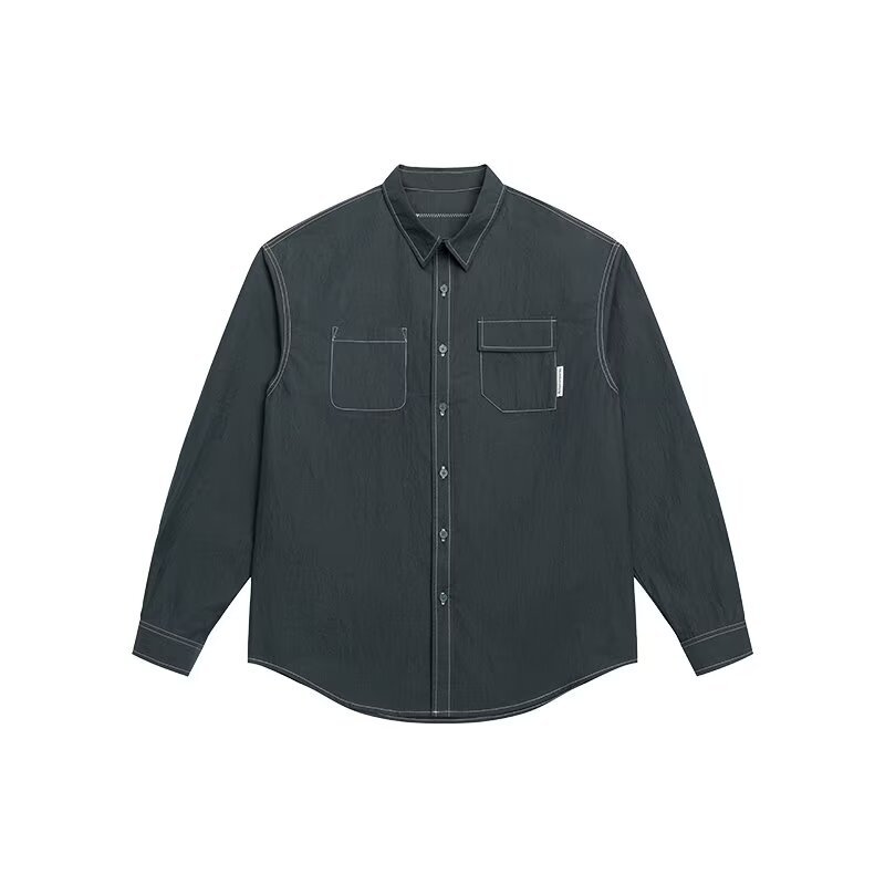 Lu Xiaohu 봄 정장 탑스티치 질감 긴팔 셔츠 셔츠 재킷 잘 생긴 남자 작업복 캐주얼 바지 트렌디스토어 가기
