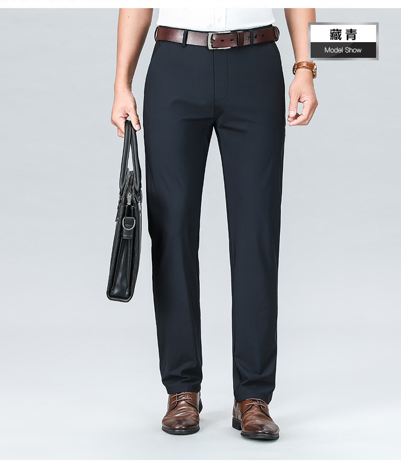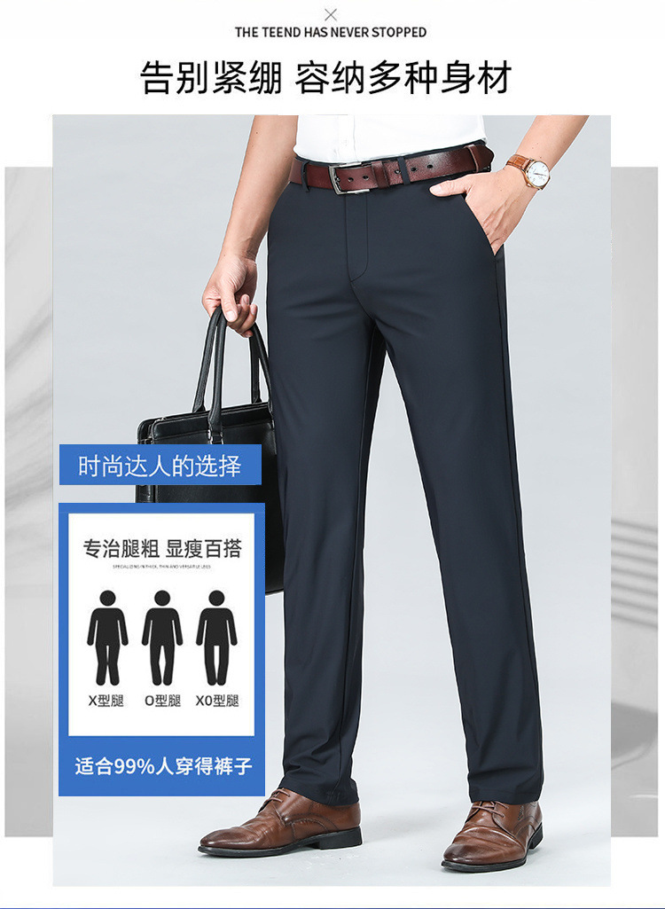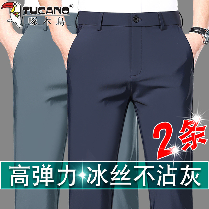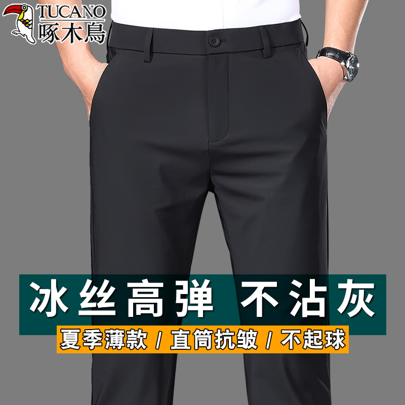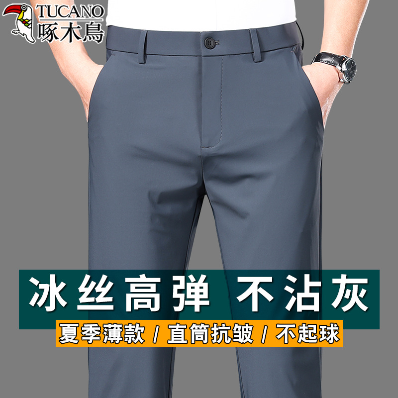 딱따구리 봄 여름 남성 캐주얼 바지 얇은 남성 바지 신축성있는 느슨한 비즈니스 스트레이트 주름 방지 노다림질 얼음 실크 바지