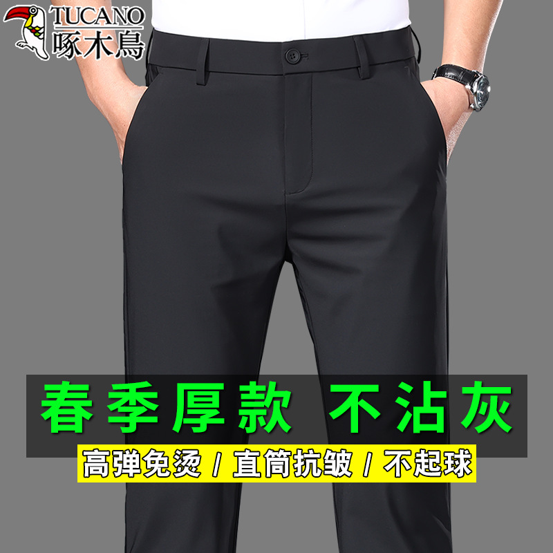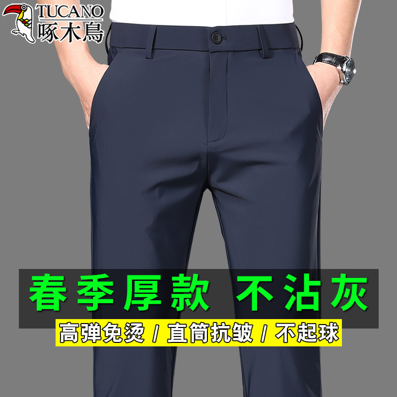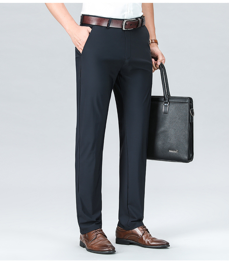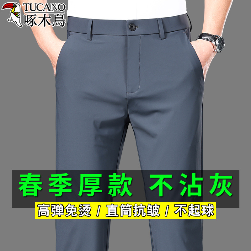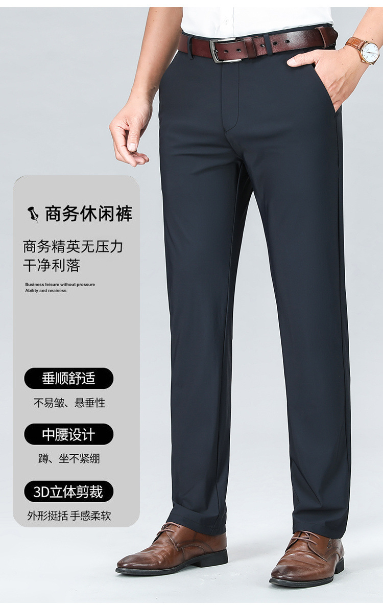 딱따구리 봄 여름 남성 캐주얼 바지 얇은 남성 바지 신축성있는 느슨한 비즈니스 스트레이트 주름 방지 노다림질 얼음 실크 바지