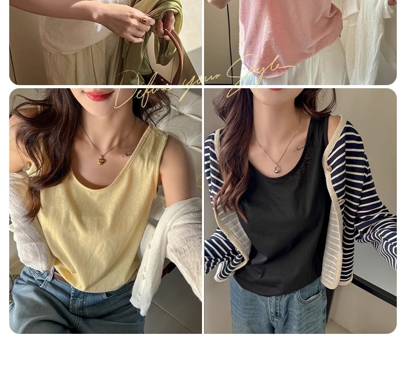 한국 스타일 심플 스타일 캐주얼 눈송이 코튼 캐미솔 민소매 탑 여름 신작 코튼 린넨 얇은 여성복스토어 가기
