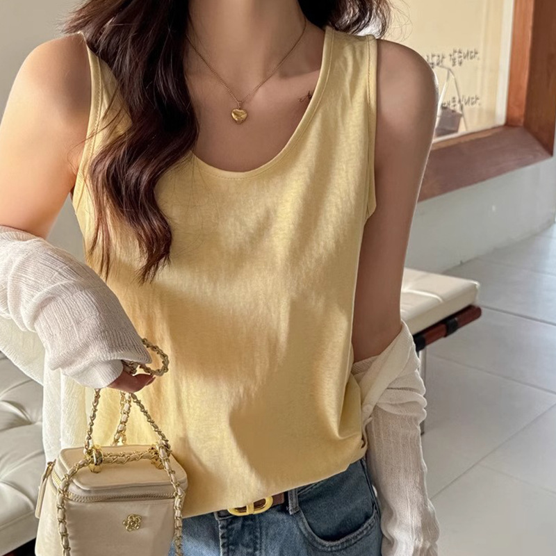 한국 스타일 심플 스타일 캐주얼 눈송이 코튼 캐미솔 민소매 탑 여름 신작 코튼 린넨 얇은 여성복