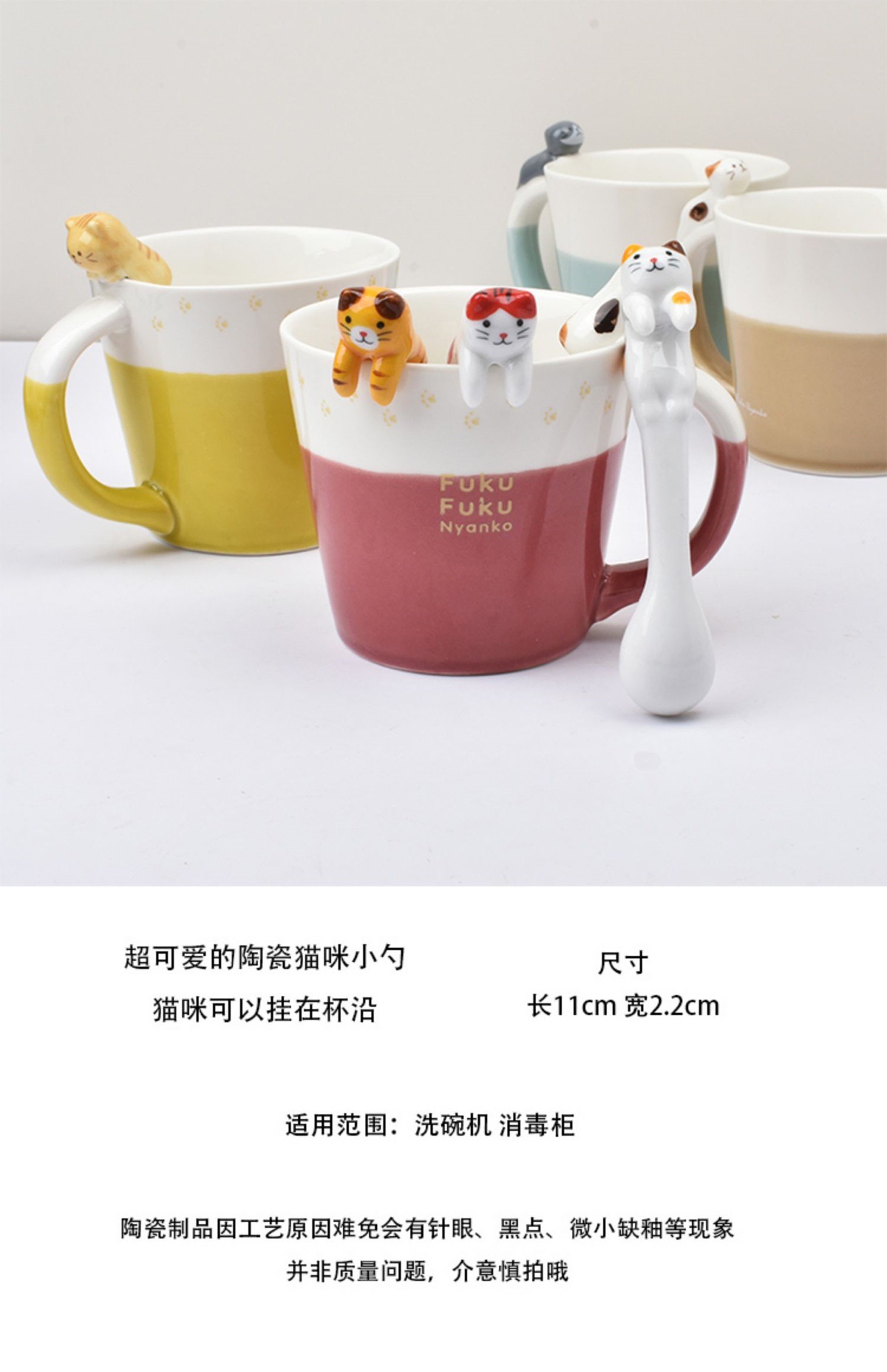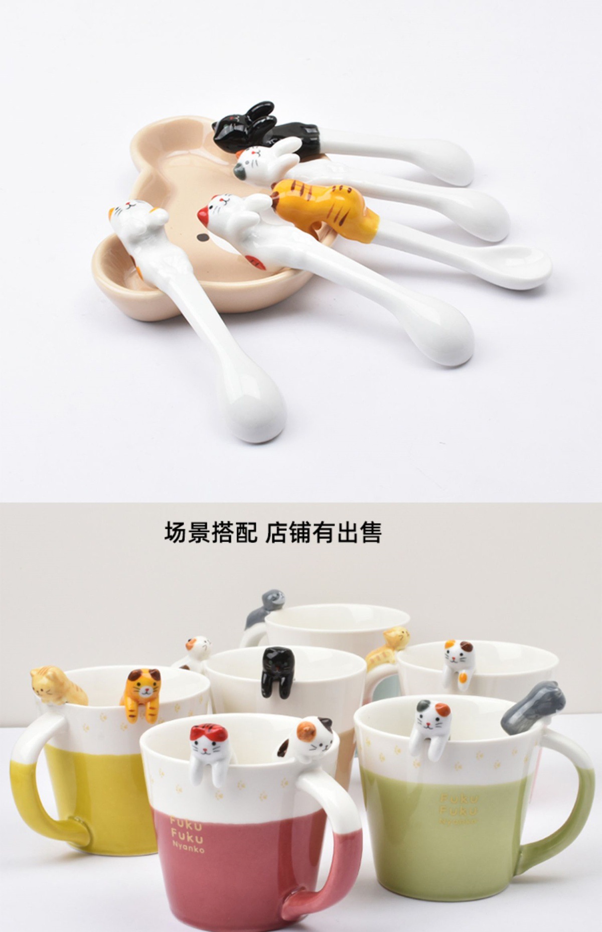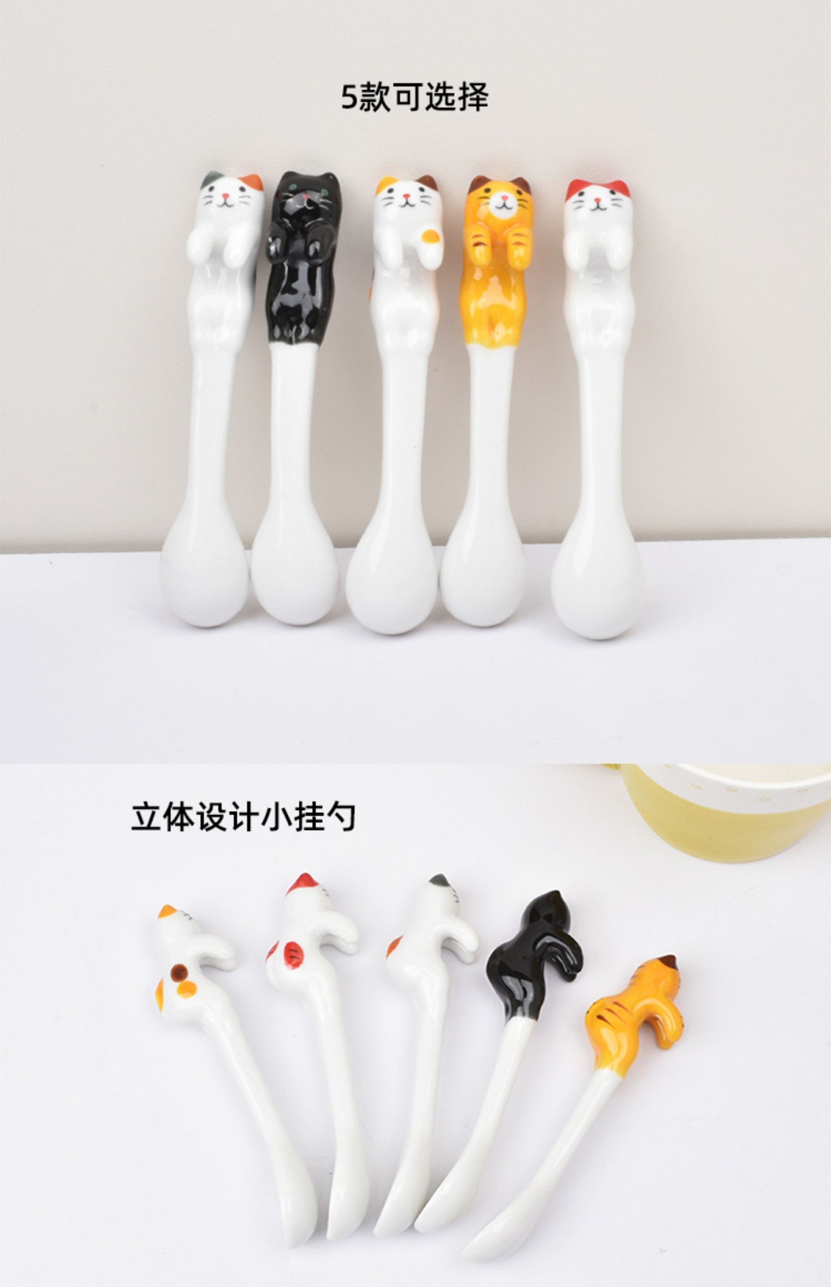 일본 세라믹 고양이 교수형 커피 스푼 크리 에이 티브 귀여운 믹싱 스푼 절묘한 교수형 귀 작은 스푼 디저트 스푼스토어 가기
