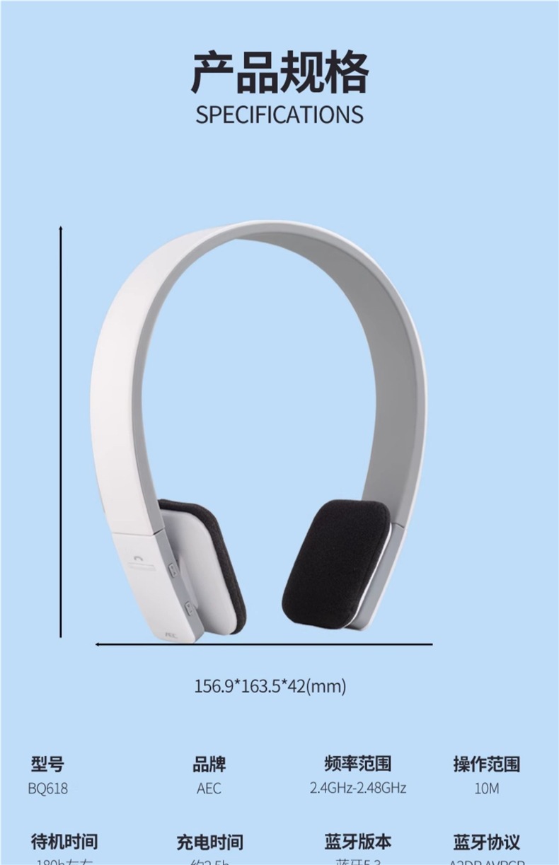 • BQ618 화이트 - 배터리 수명 20시간 [스테레오 음질 + 오디오 케이블 + 충전 케이블]