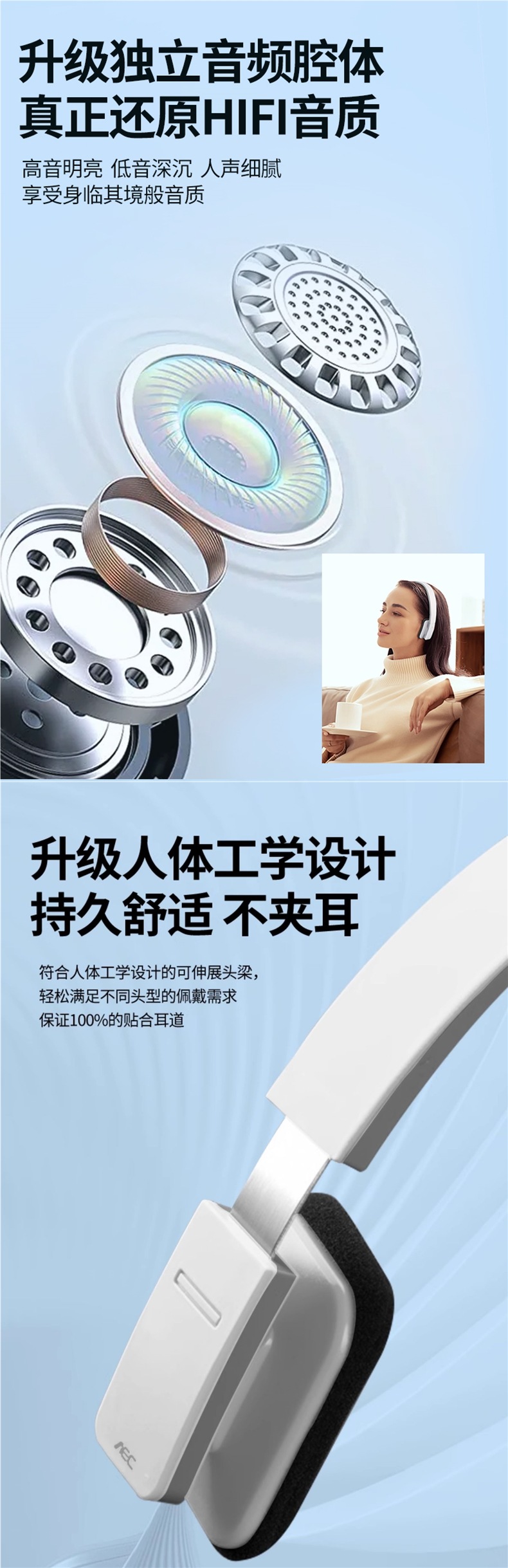 • BQ618 화이트 - 배터리 수명 20시간 [무료 충전 케이블]