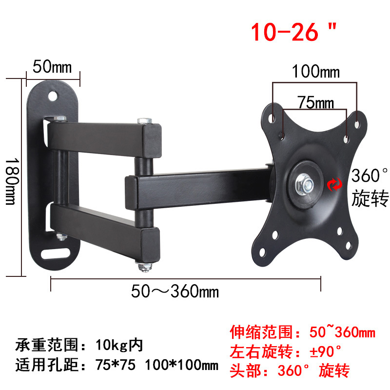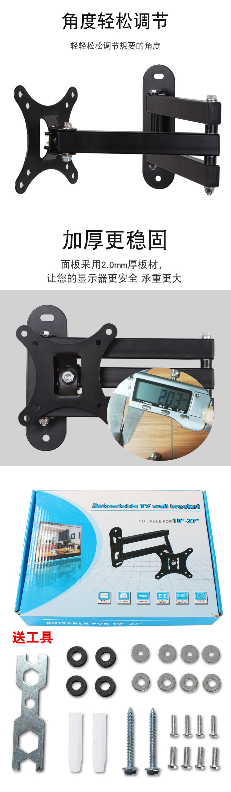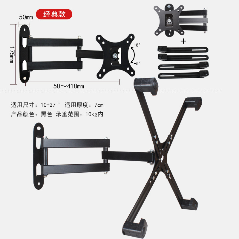 19- 24-27inch 모니터 범용 텔레스코픽 회전 벽 마운트 홀 없음 LCD 컴퓨터 변환 벽 선반