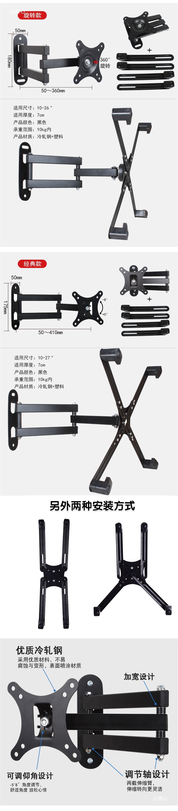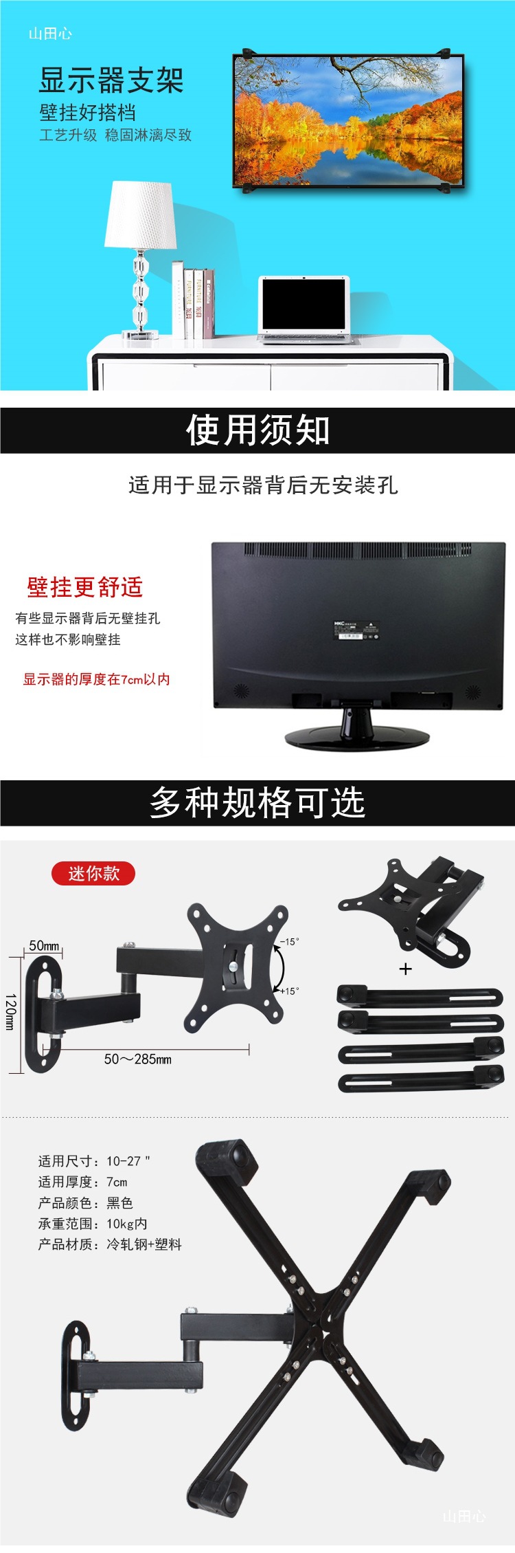 19- 24-27inch 모니터 범용 텔레스코픽 회전 벽 마운트 홀 없음 LCD 컴퓨터 변환 벽 선반스토어 가기