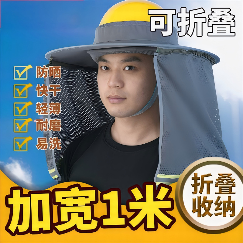 여름 자외선 차단 안전모, 건설 현장 건설 자외선 차단 모자, 통기성 태양 모자, 큰 챙스토어 가기