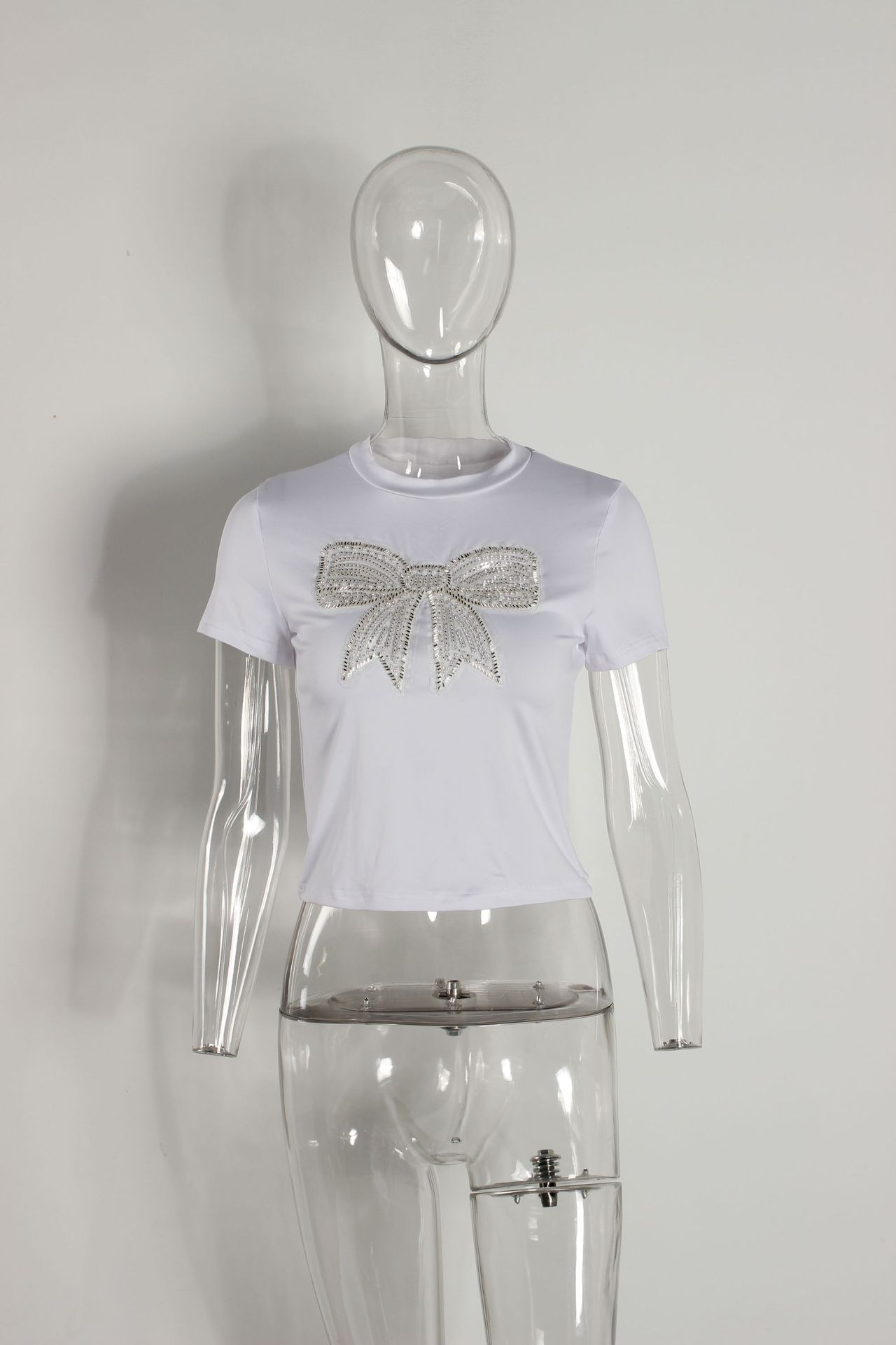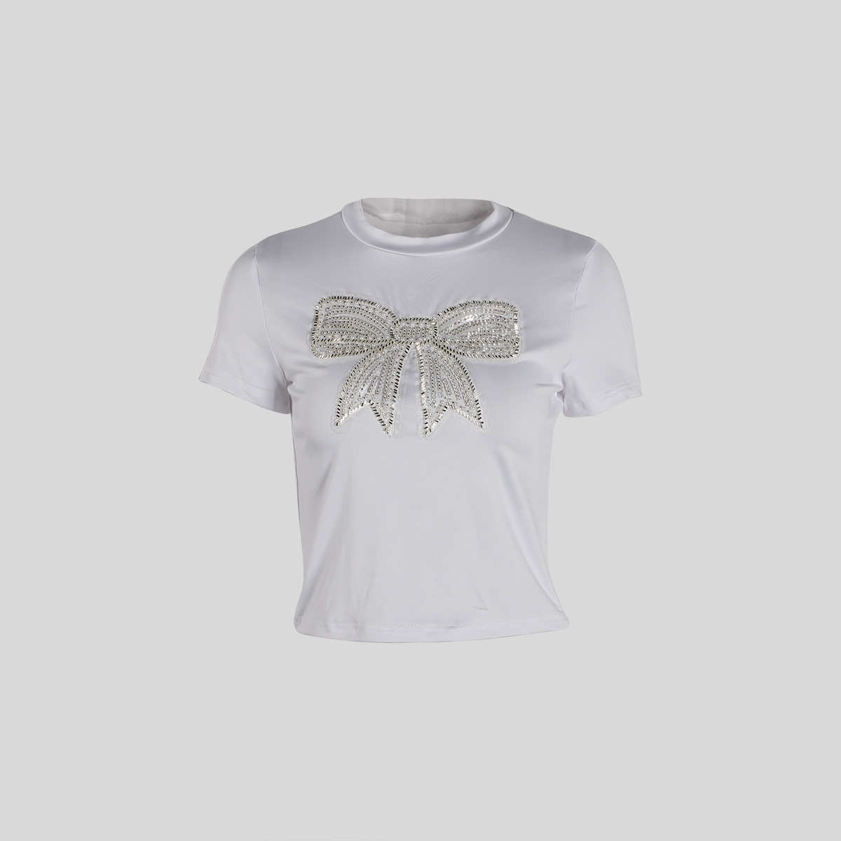 유럽과 미국의 새로운 여름 여성 의류 국경 간 대외 무역 패션 캐주얼 통근 느슨한 라운드 넥 보우 프린트 티셔츠 짧은