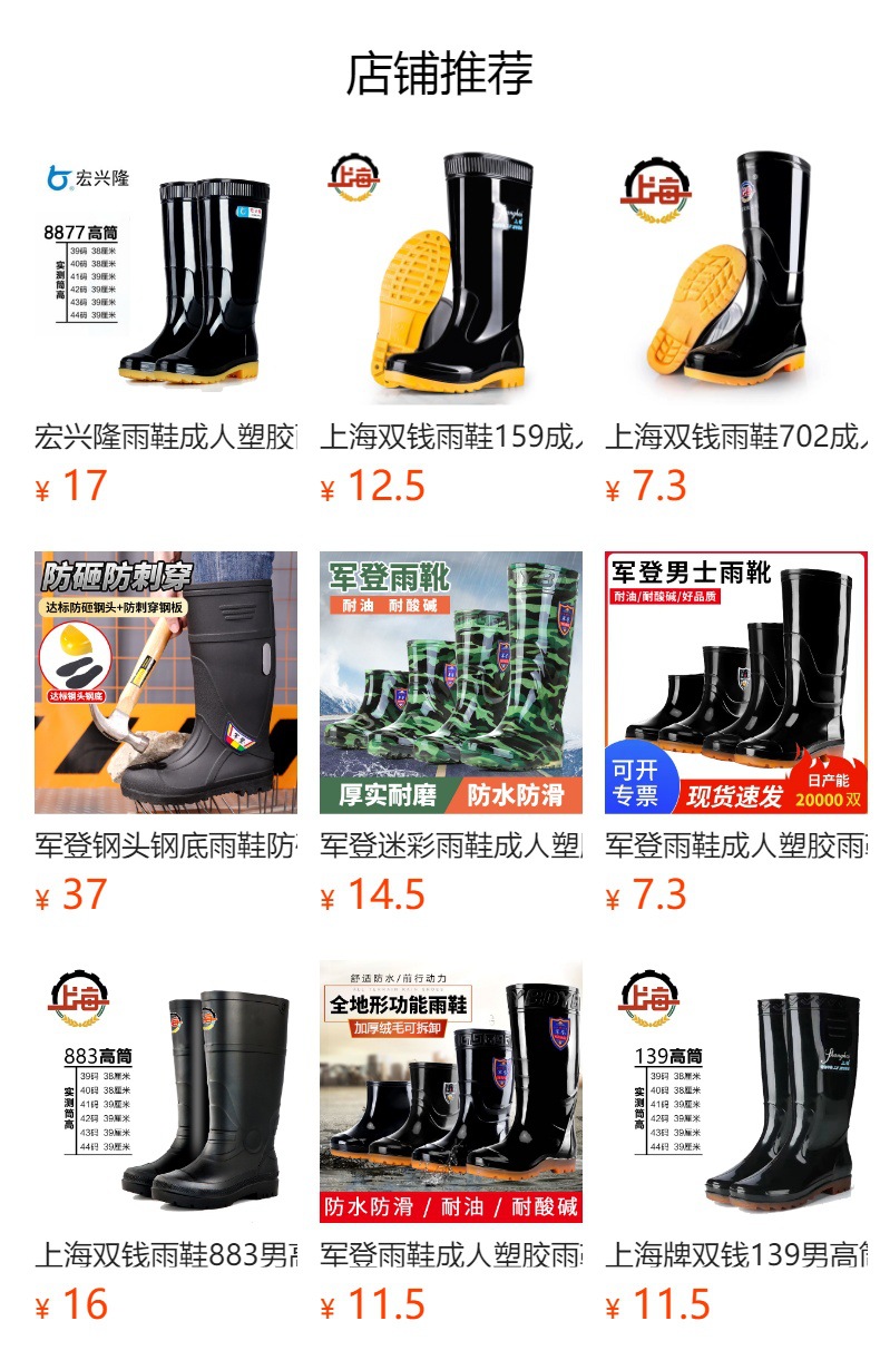 상하이 Shuangqian 장화 939 성인 플라스틱 장화 하이 탑 짧은 장화 방수 미끄럼 방지 내마모성 덧신 워터 부츠스토어 가기