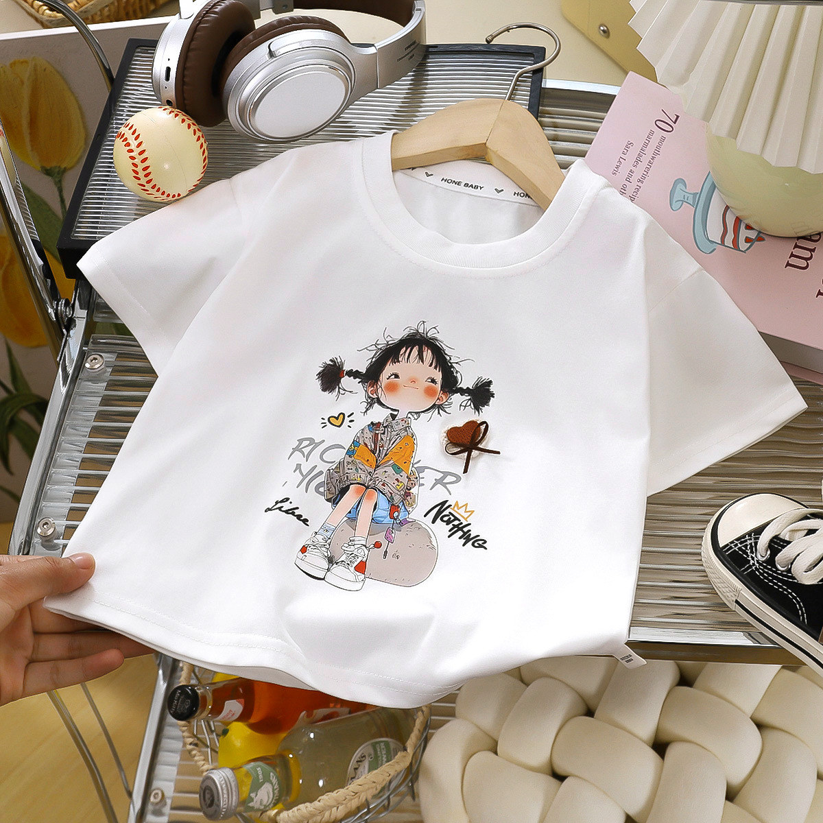 【솔로나】누드 느낌의 아동용 반팔 티셔츠 남아 여아 2026년 신상품 흡습 땀 배출 봄 여름 시원한 반팔 티셔츠