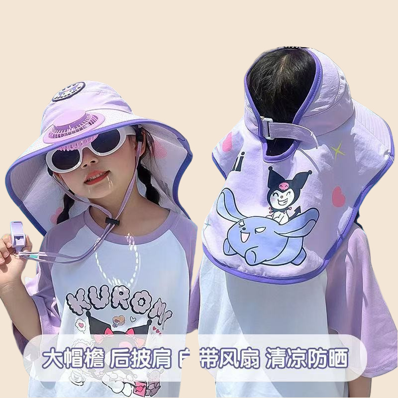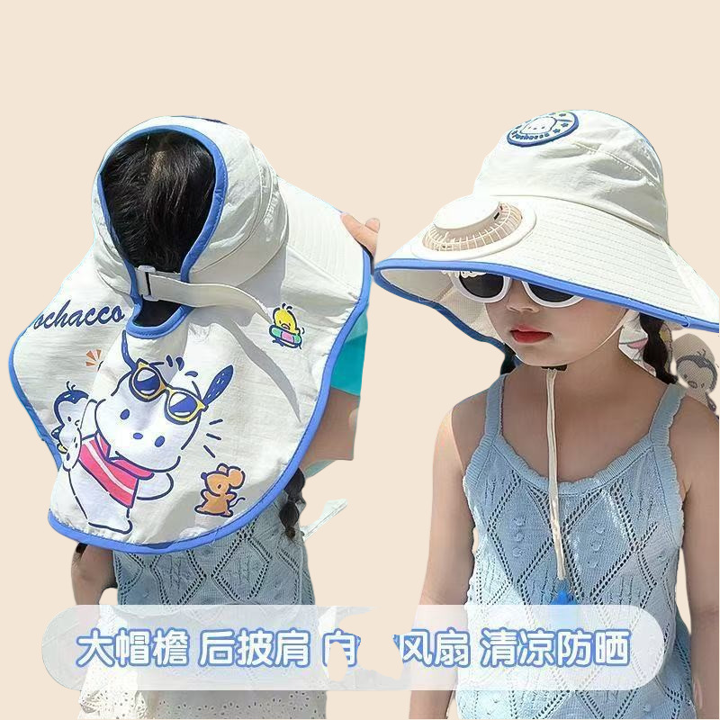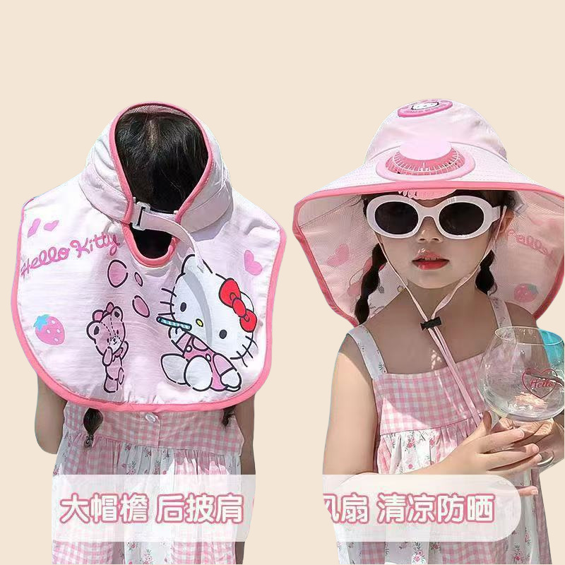 【】자외선 차단 모자, 남녀공용 2026년형 어린이용 선풍기 장착 챙넓은 플랫탑 밀짚모자 여성용