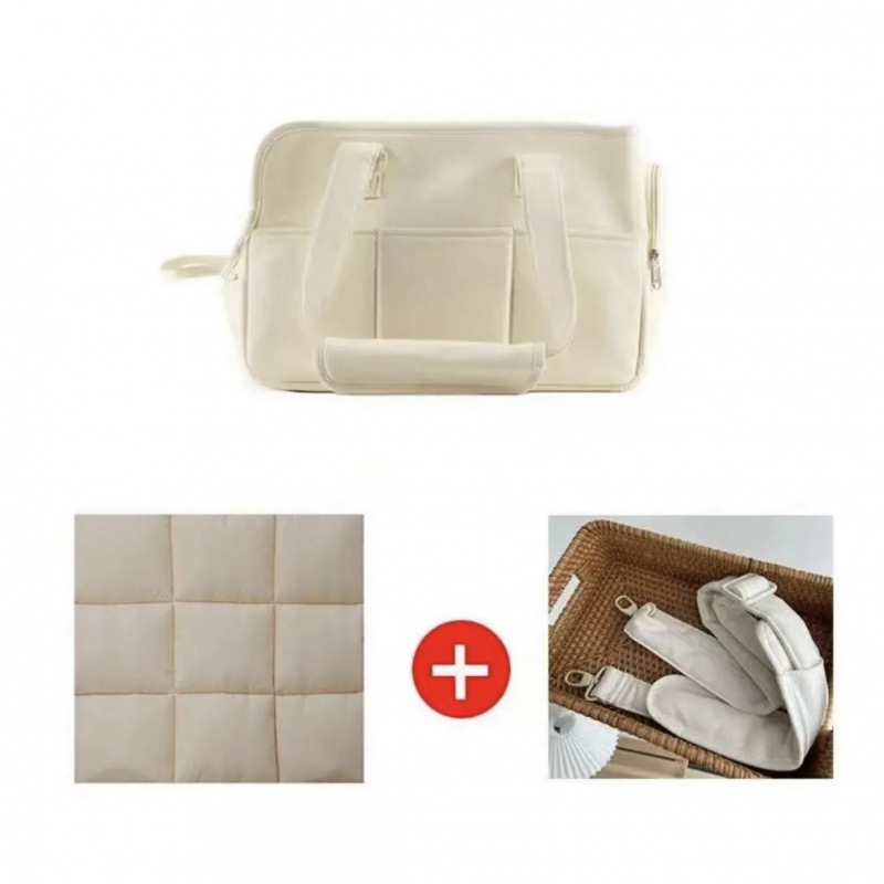 • 베이지색 가방 + 크로스끈 + 살구쿠션 (매트 + 담요 포함)
