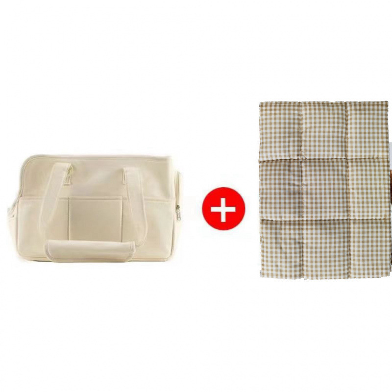 • 베이지색 가방 + 체크무늬 매트 (매트 + 담요 포함)