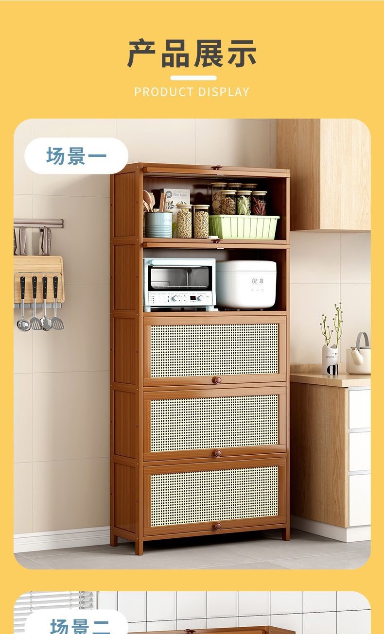 2025 새로운 주방 등나무 수납 캐비닛 거실 현대적인 간단한 다기능 찬장 플립 탑 캐비닛