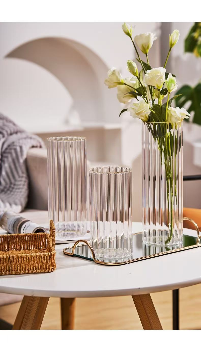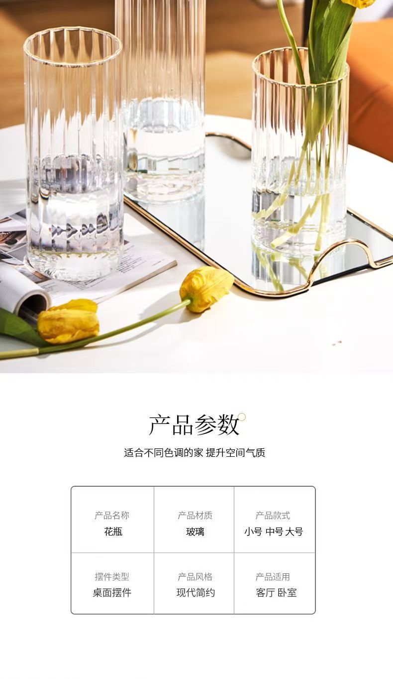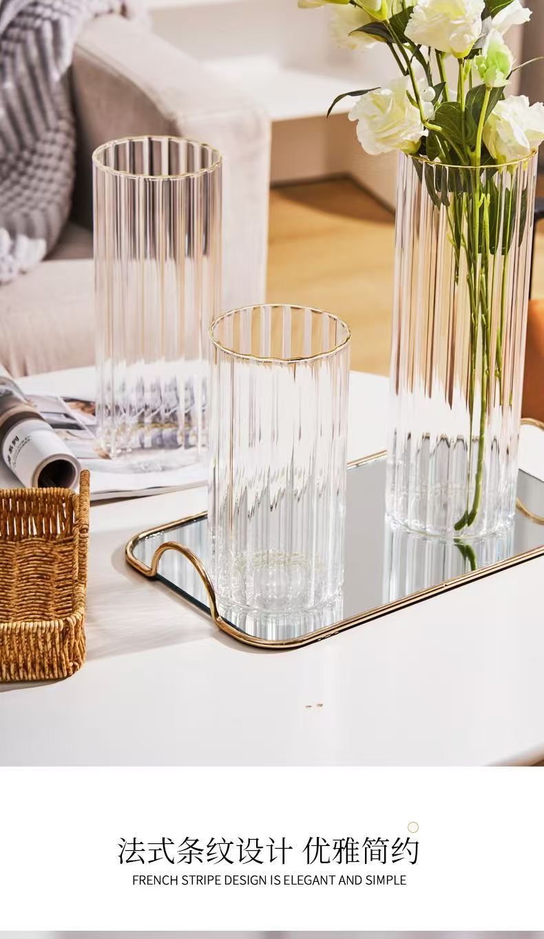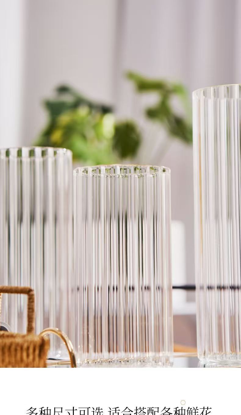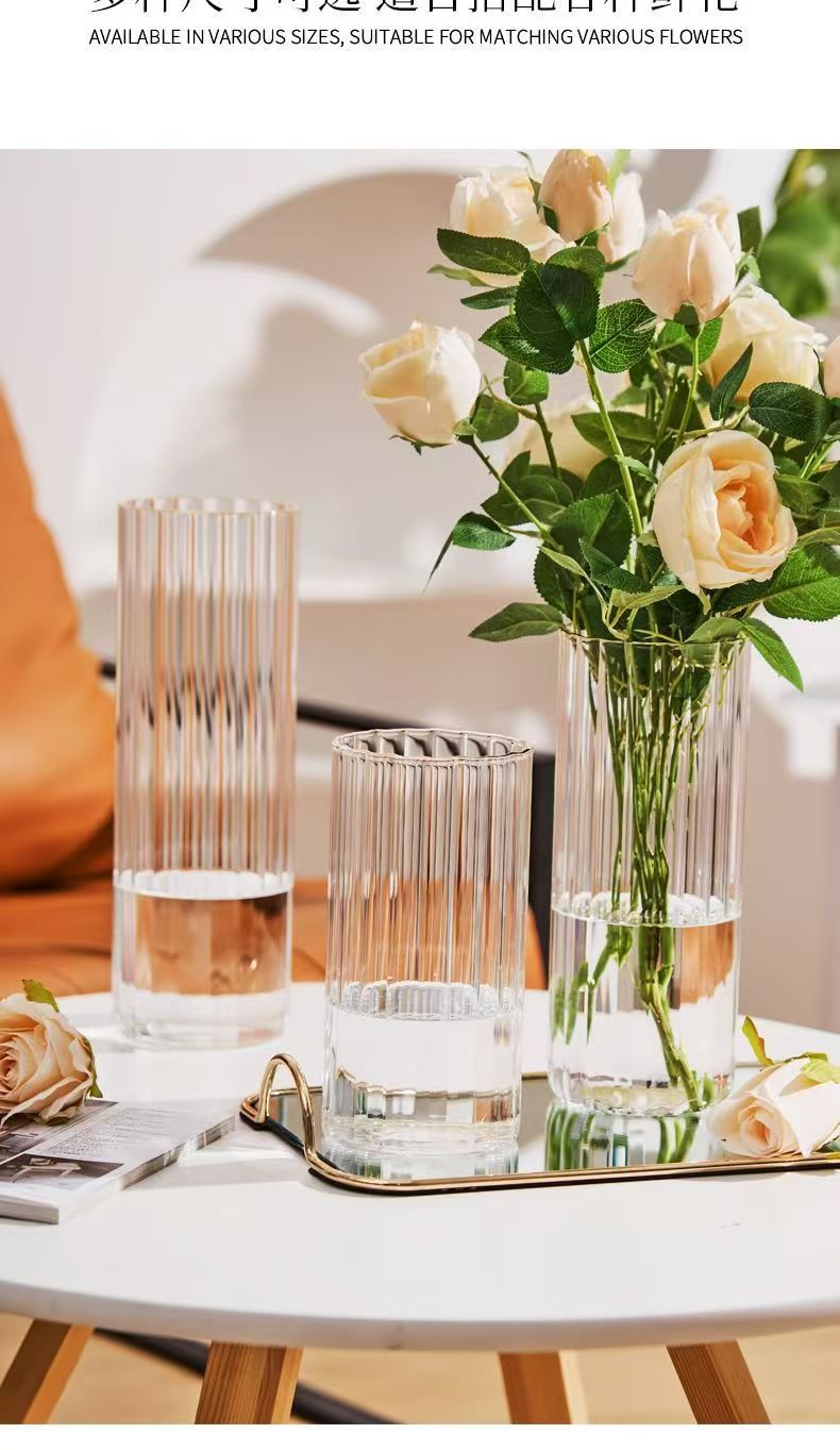 세로 줄무늬 꽃병, 작은 신선한 직선형 창의적인 유리 투명 수경 꽃 장식품, 장식용 유리 꽃병