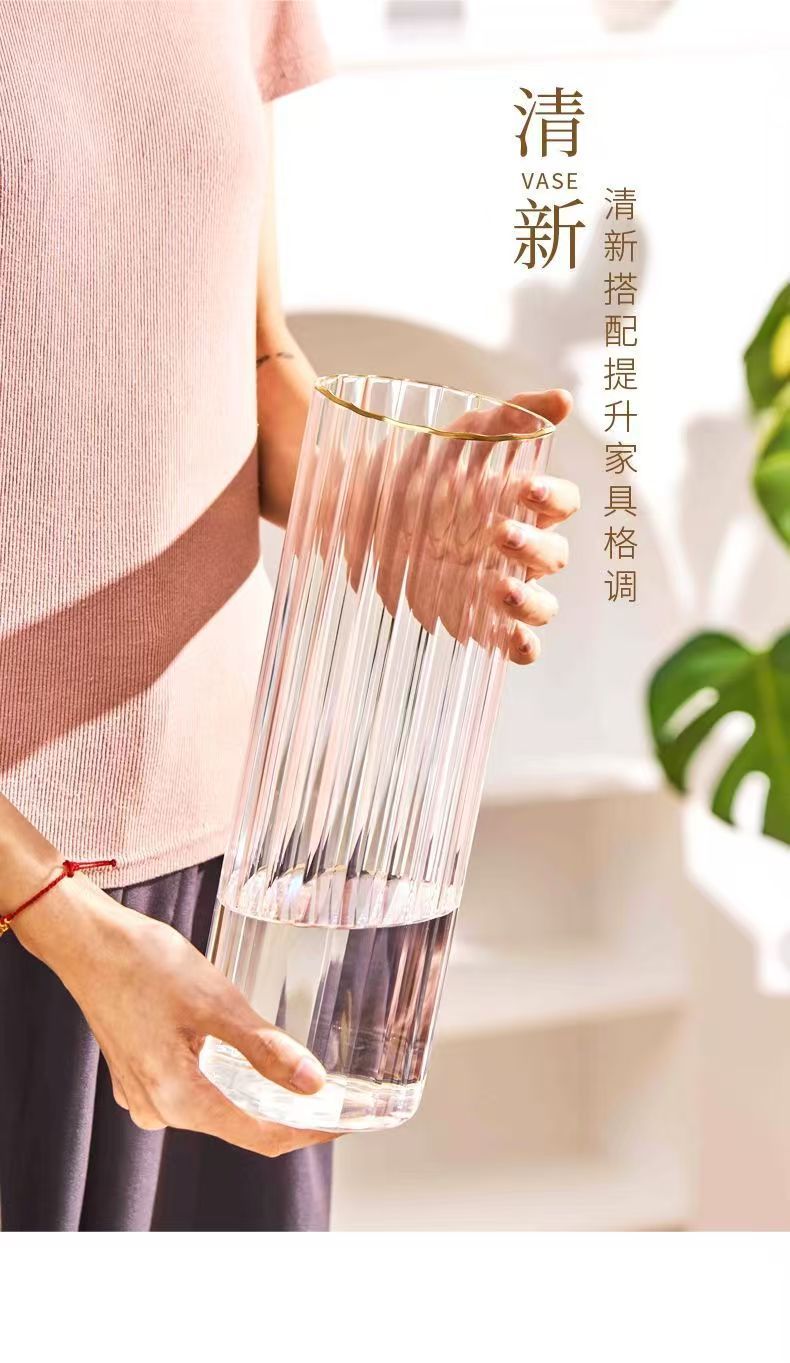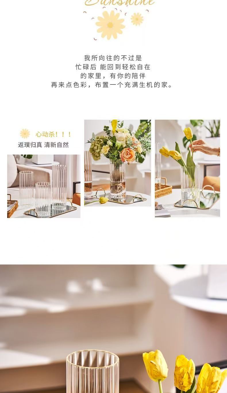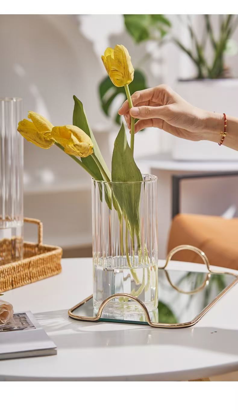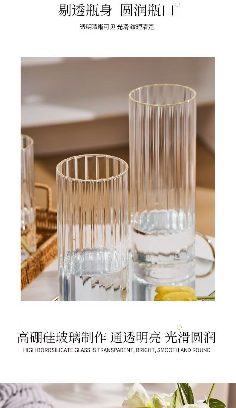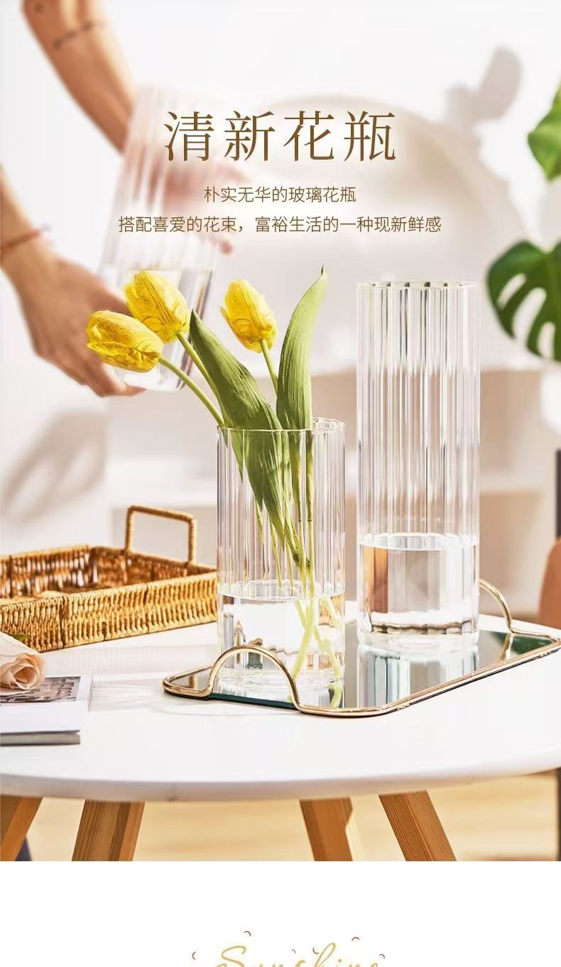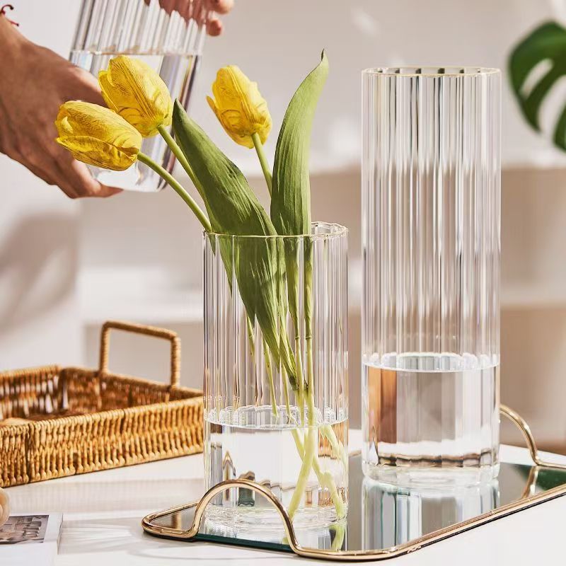 세로 줄무늬 꽃병, 작은 신선한 직선형 창의적인 유리 투명 수경 꽃 장식품, 장식용 유리 꽃병