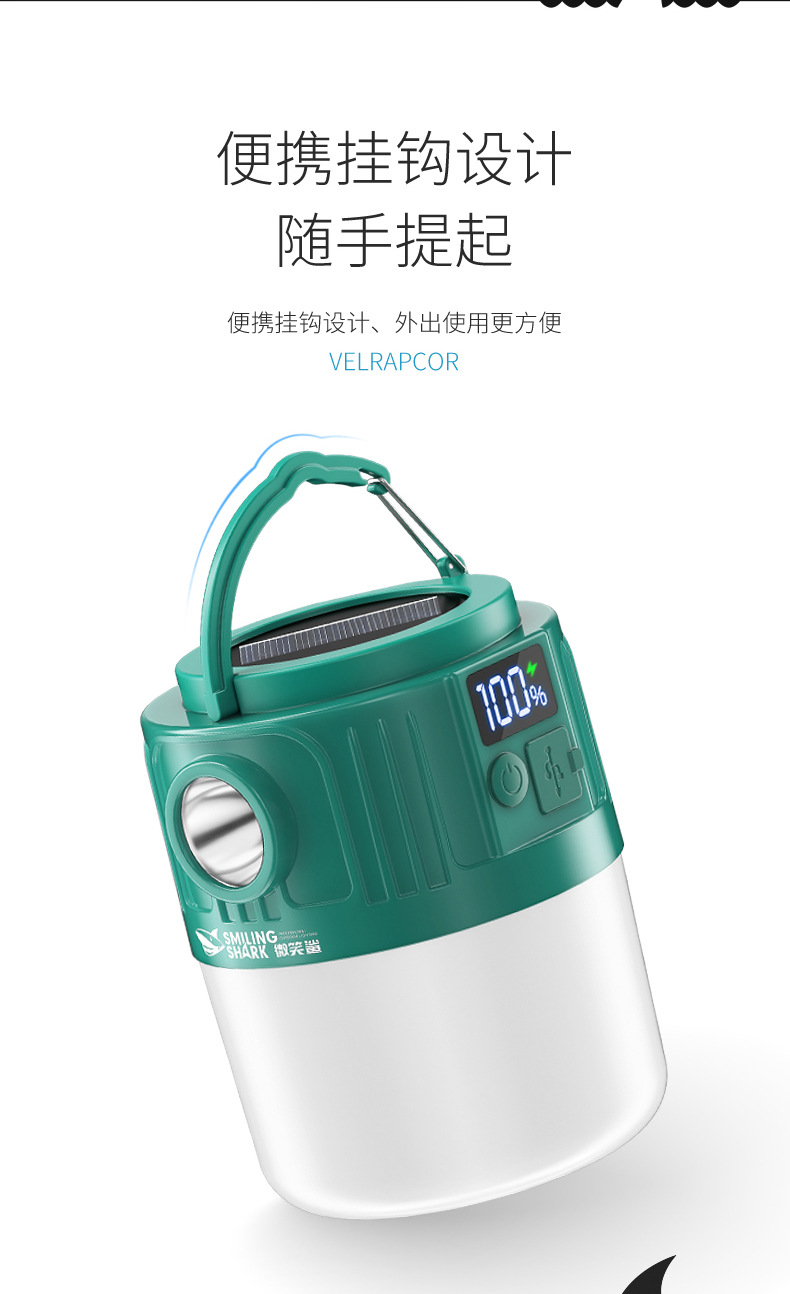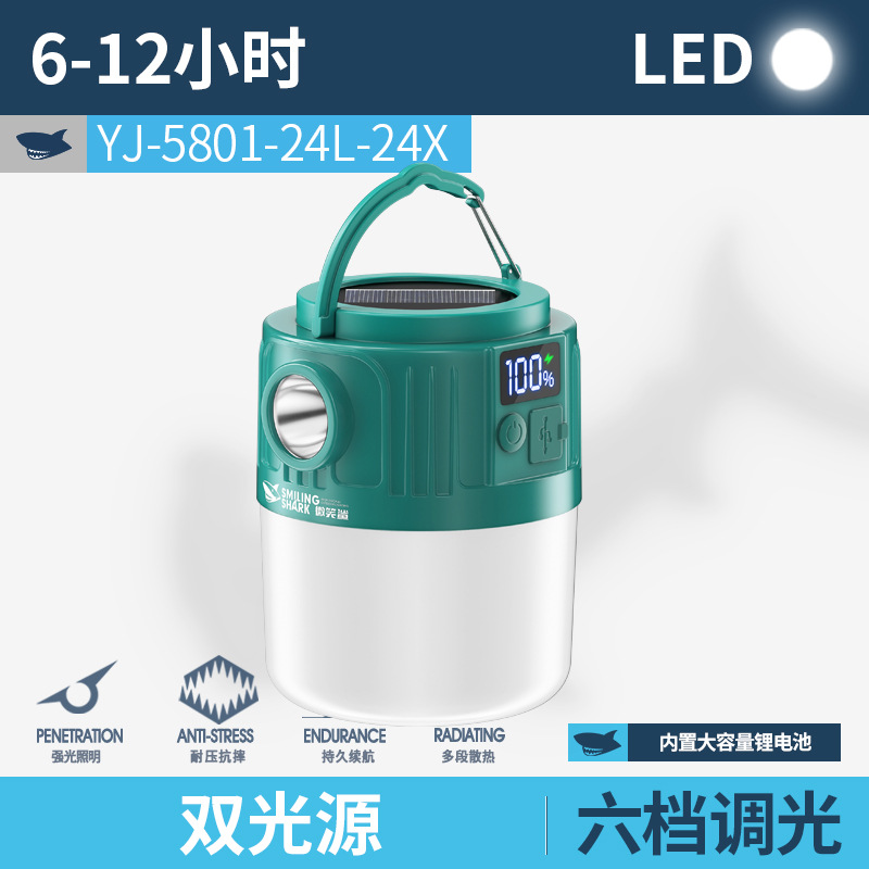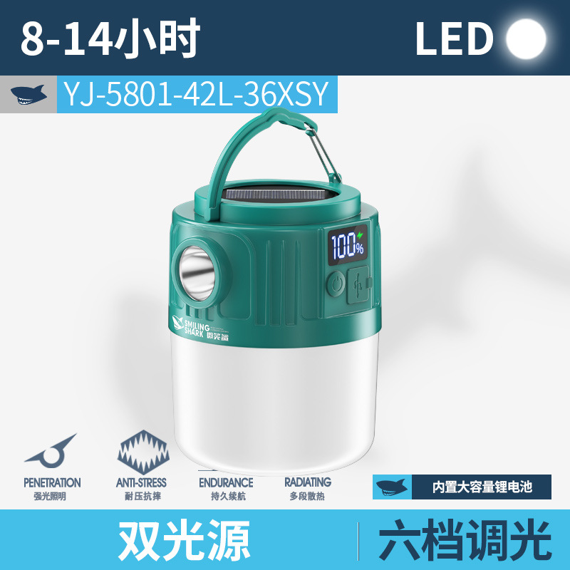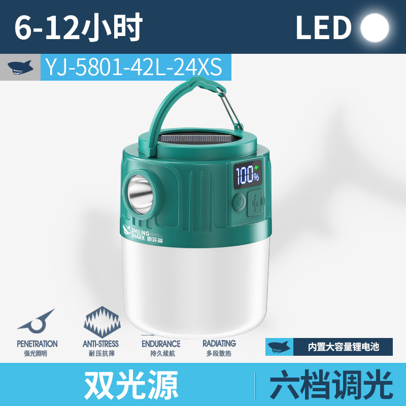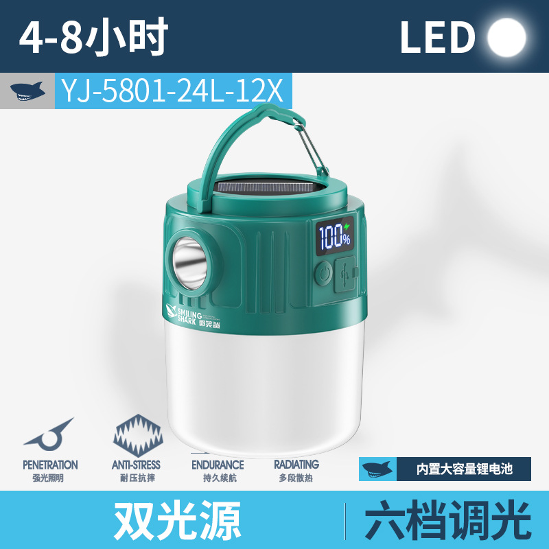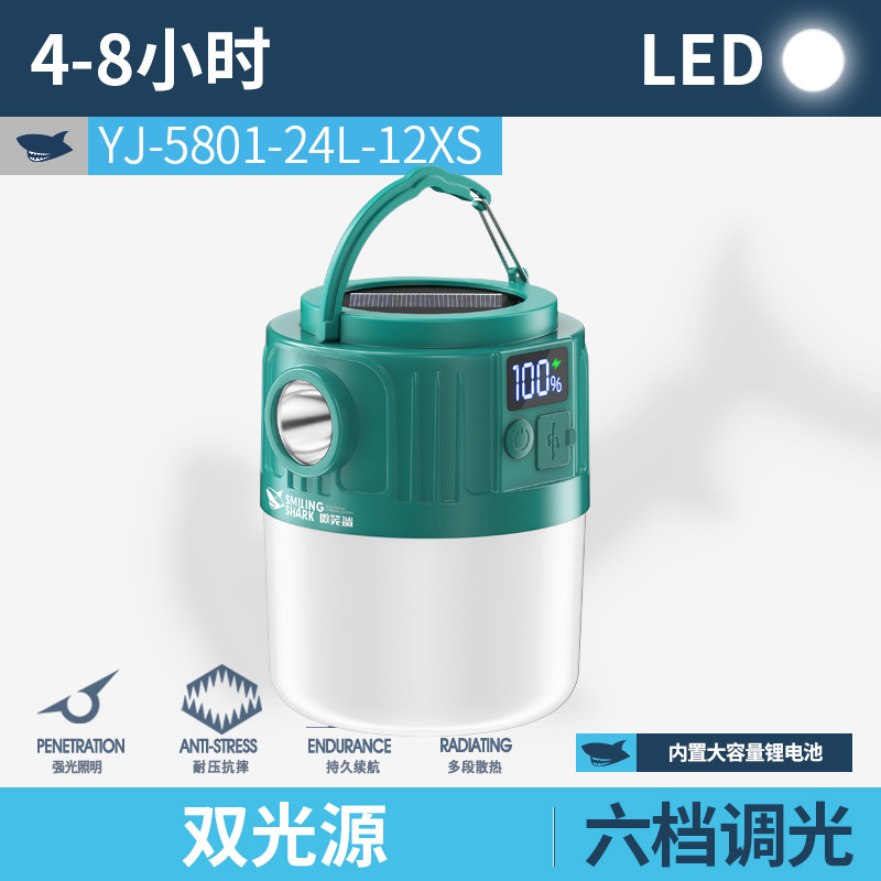 웃는 상어 야외 조명 캠핑 라이트 넷 레드 나이트 마켓 스톨 라이트 정전 비상 조명 홈 충전식