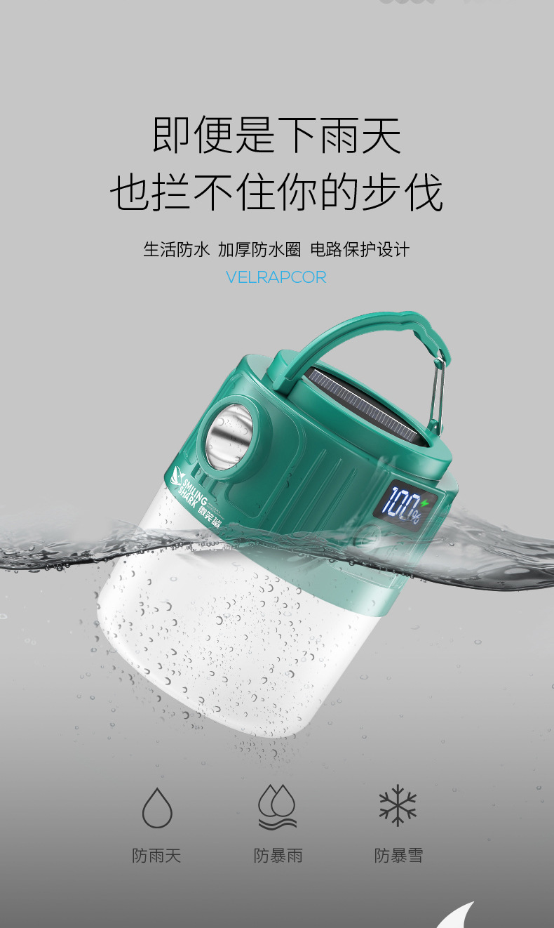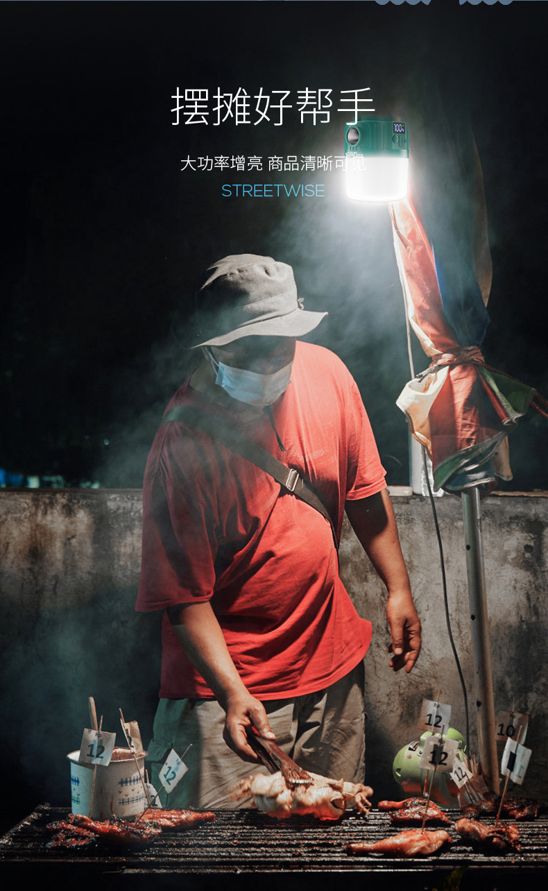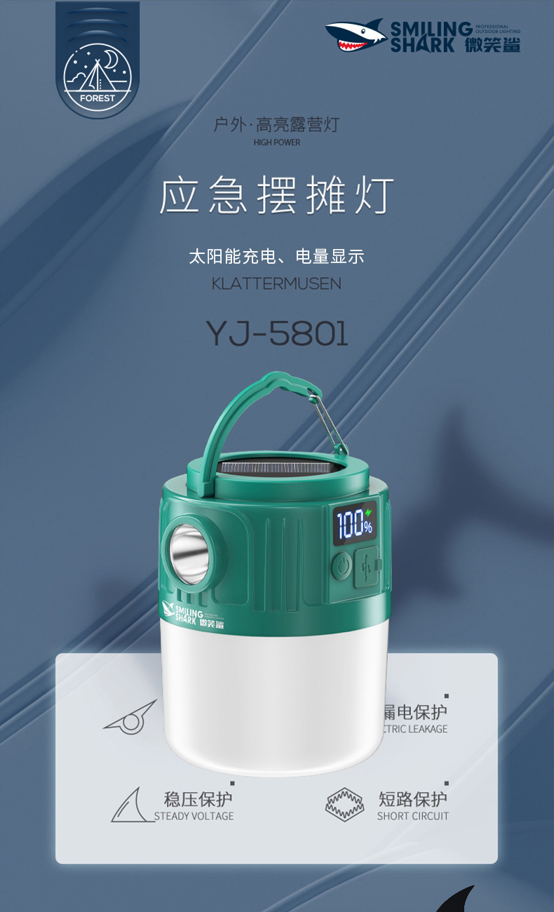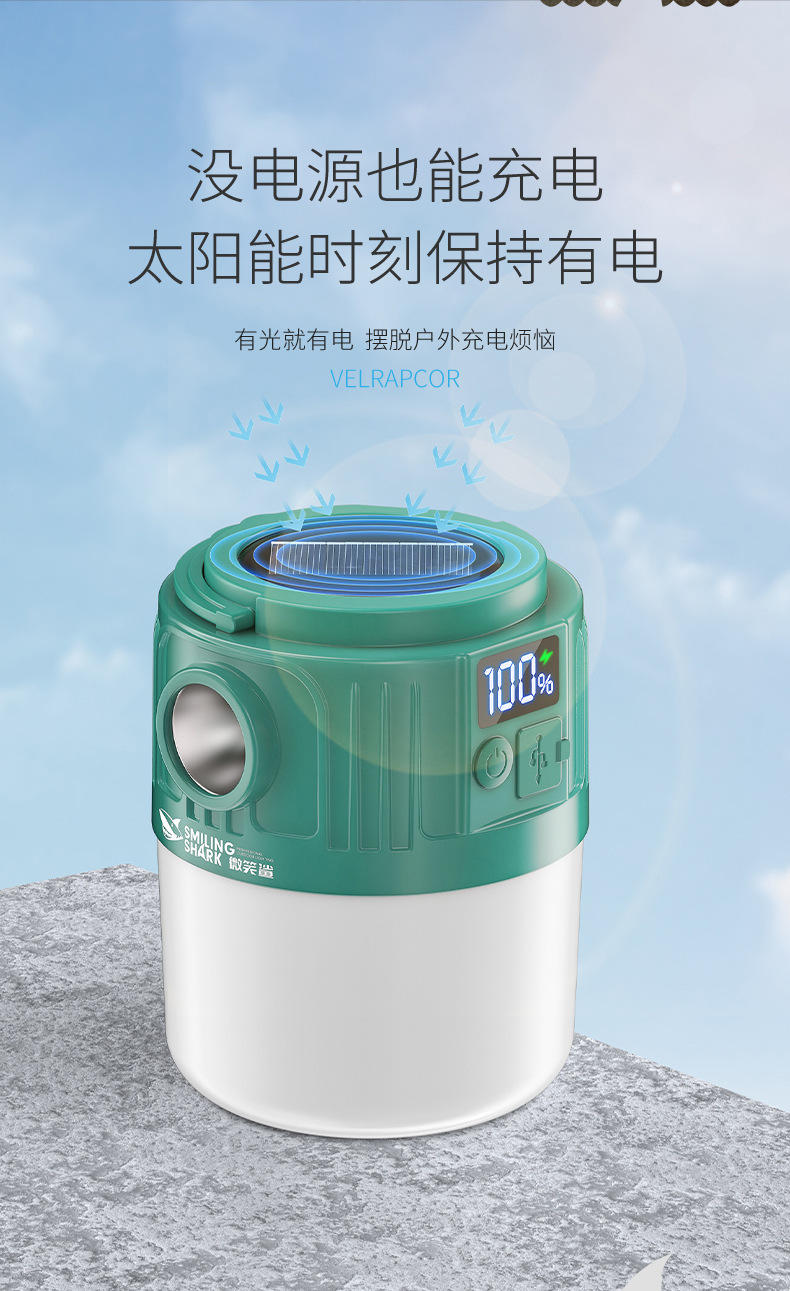 웃는 상어 야외 조명 캠핑 라이트 넷 레드 나이트 마켓 스톨 라이트 정전 비상 조명 홈 충전식