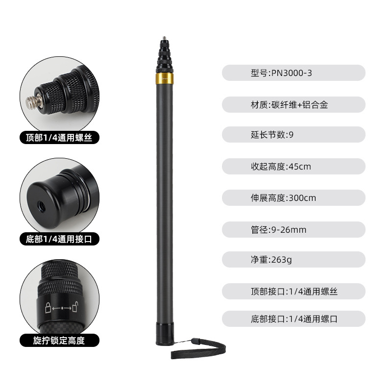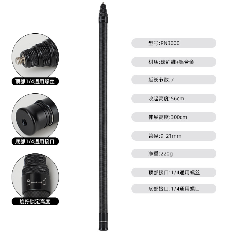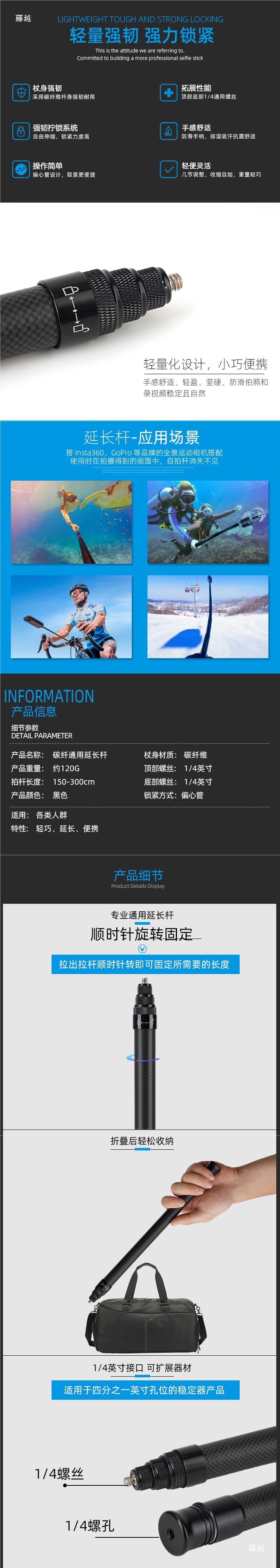 Insta360x3/x4 오토바이 3m 롱 스틱 스포츠 카메라 연장 막대에 적합한 새로운 탄소 섬유 셀카 스틱스토어 가기