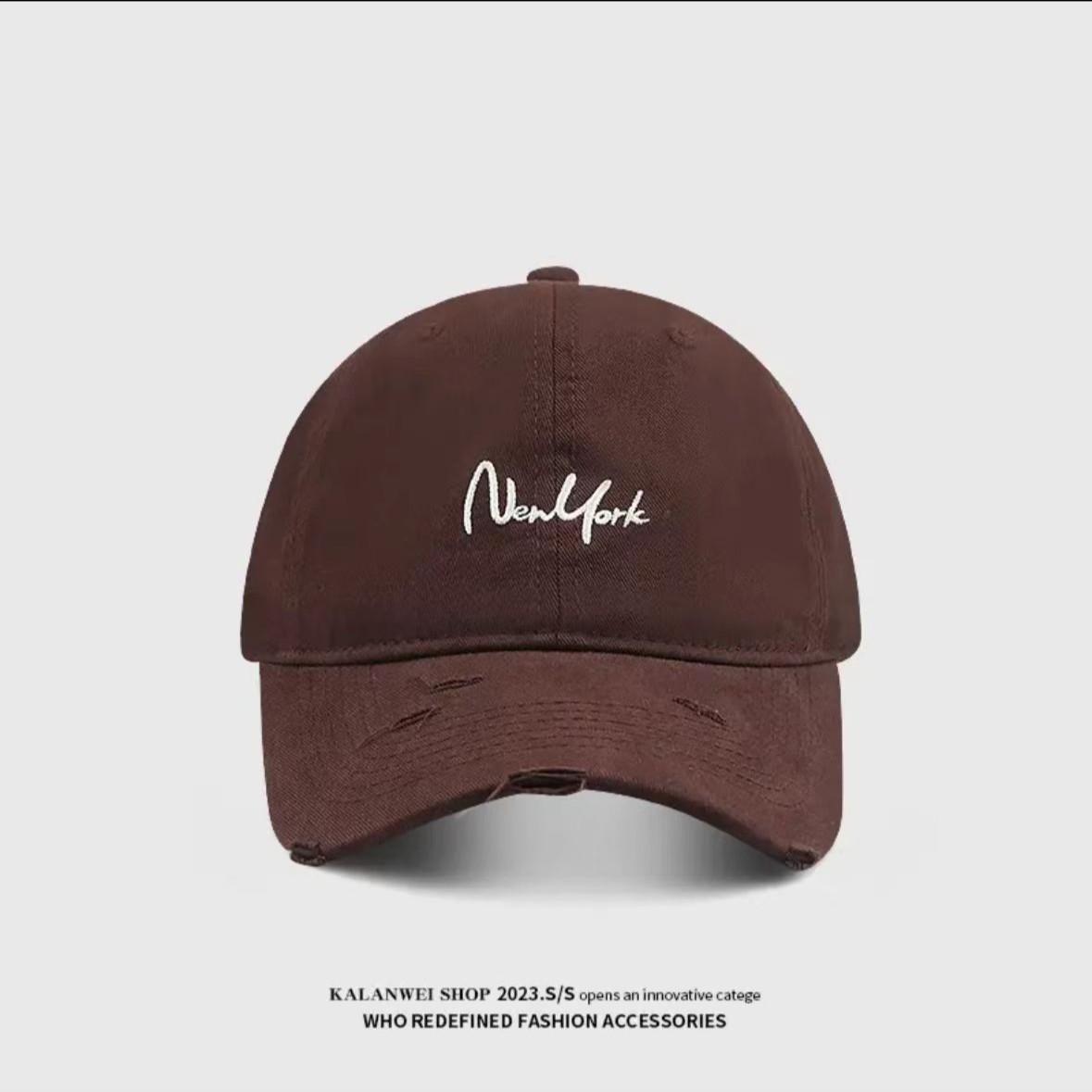 • 경사형 스몰 NY 야구 모자 브라운