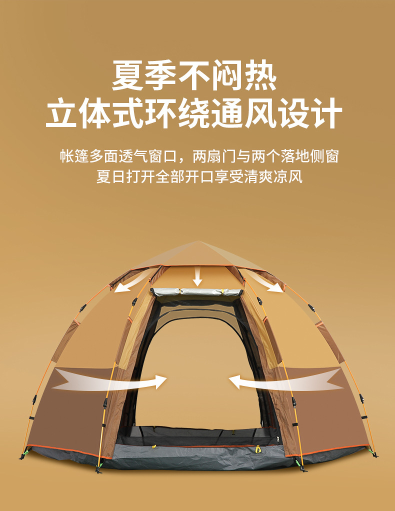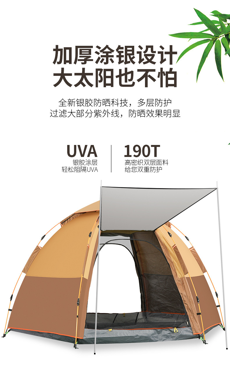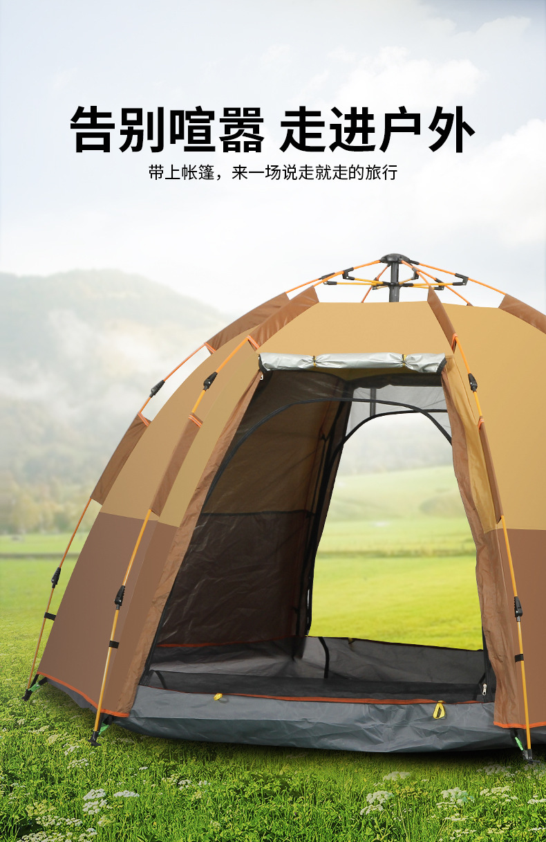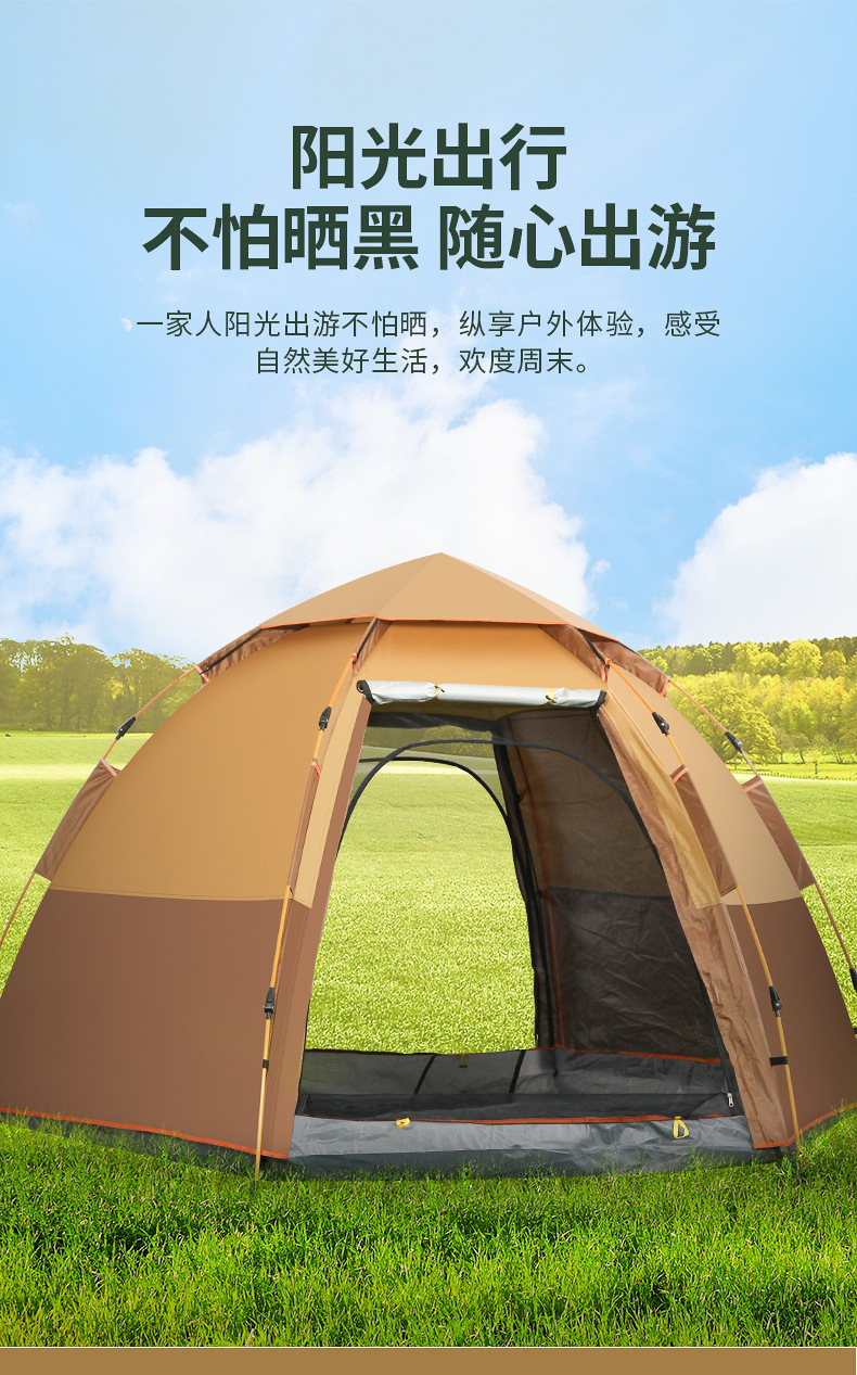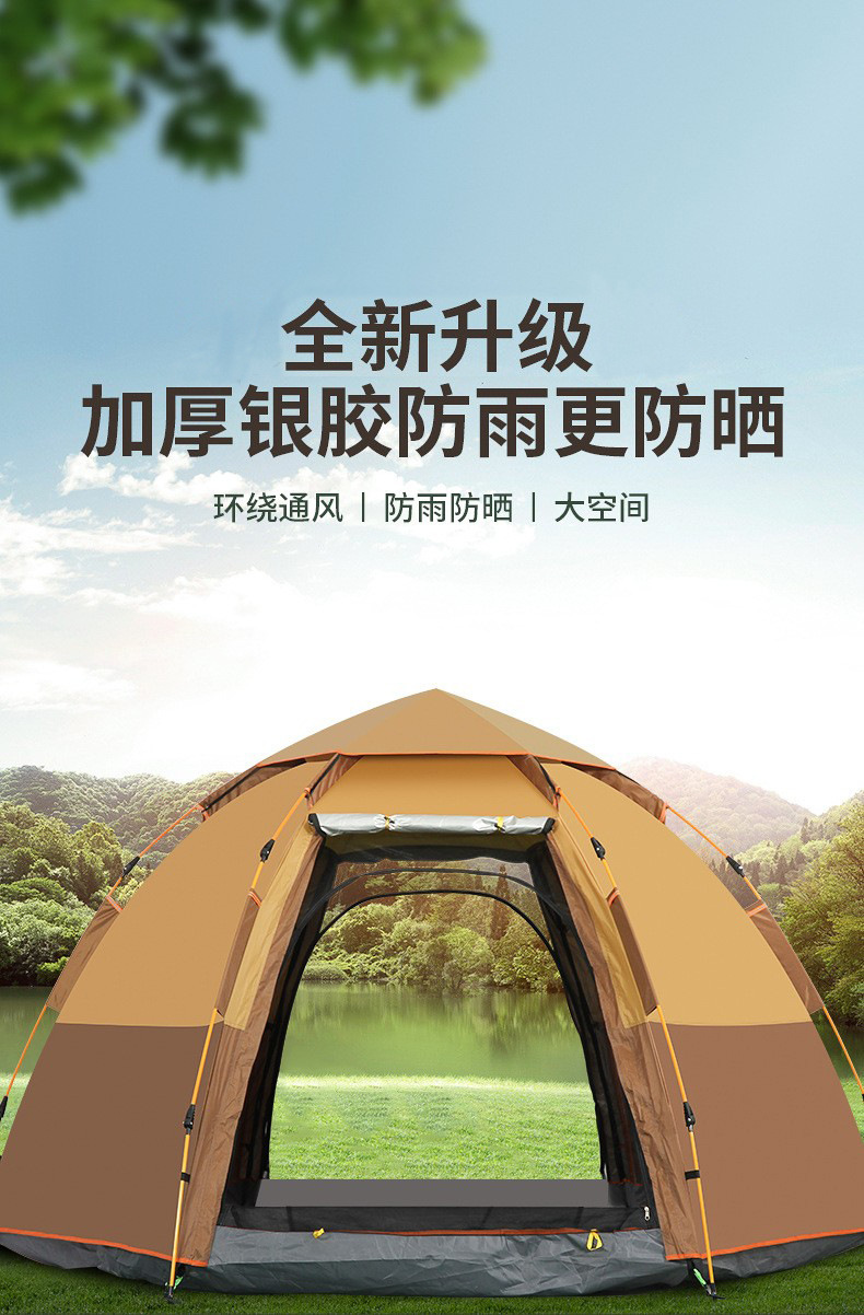 도매 야외 휴대용 옥스포드 천 방수 및 자외선 차단 캠핑 피크닉 이중층 육각 텐트 빠른 설치 차양스토어 가기