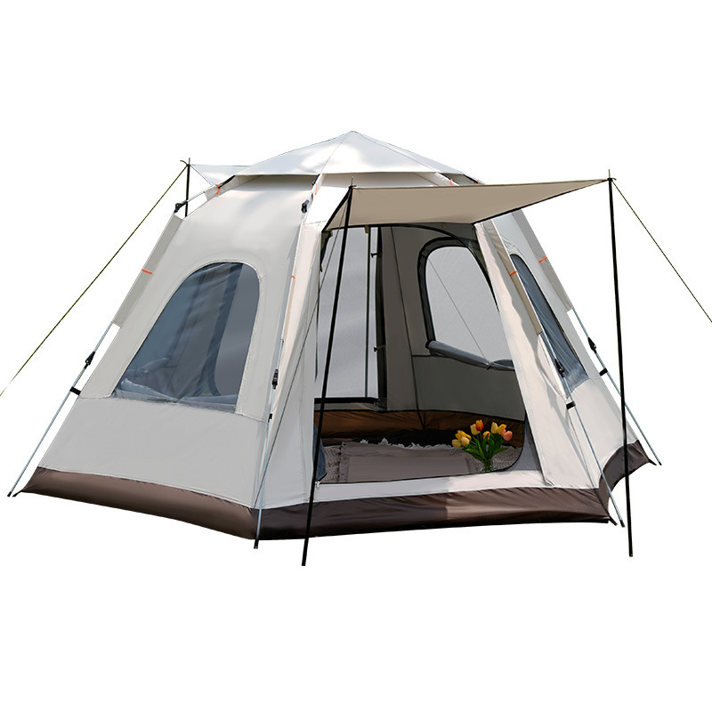 도매 야외 휴대용 옥스포드 천 방수 및 자외선 차단 캠핑 피크닉 이중층 육각 텐트 빠른 설치 차양
