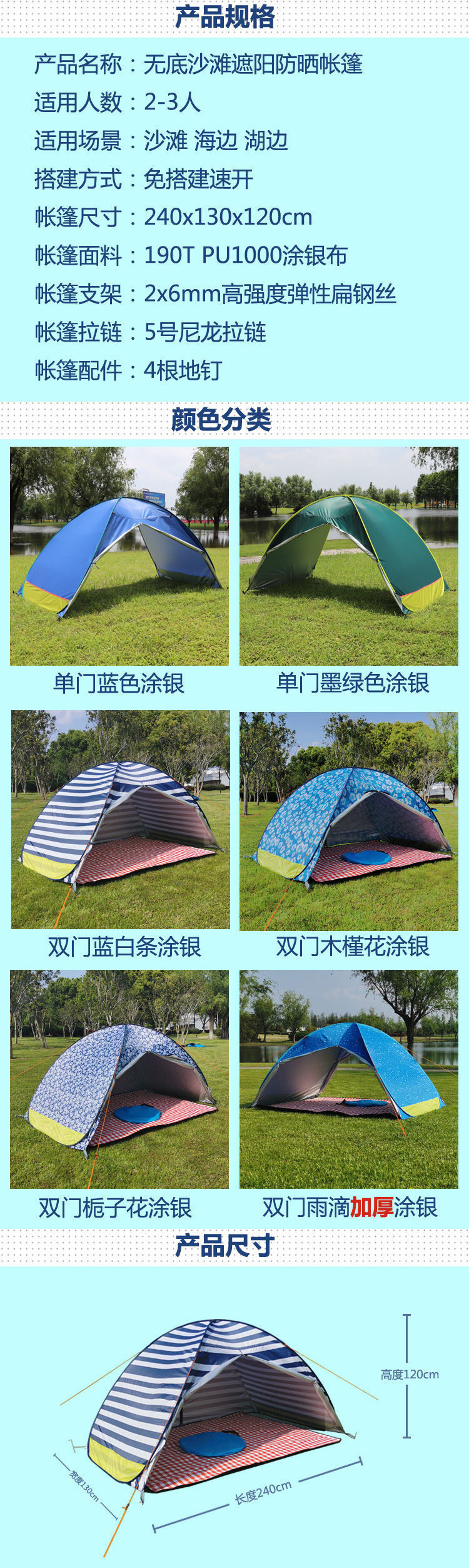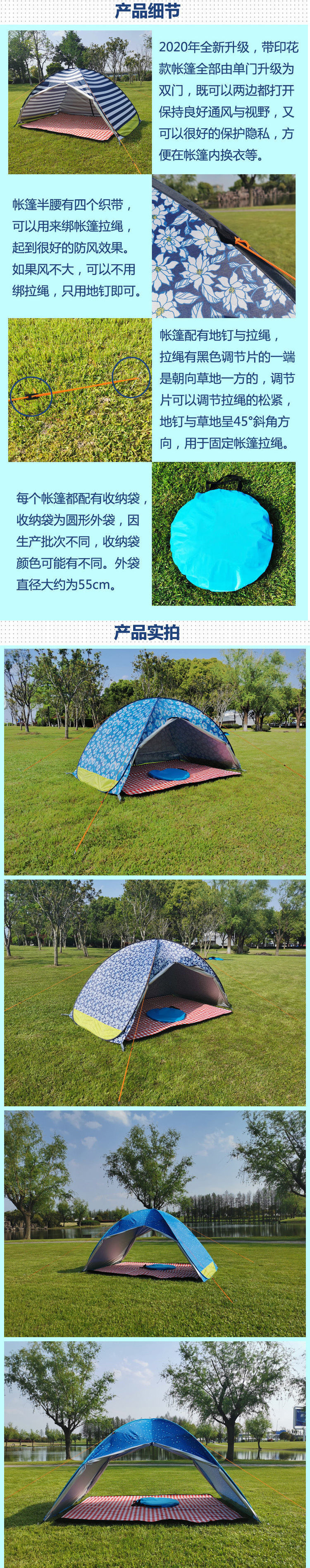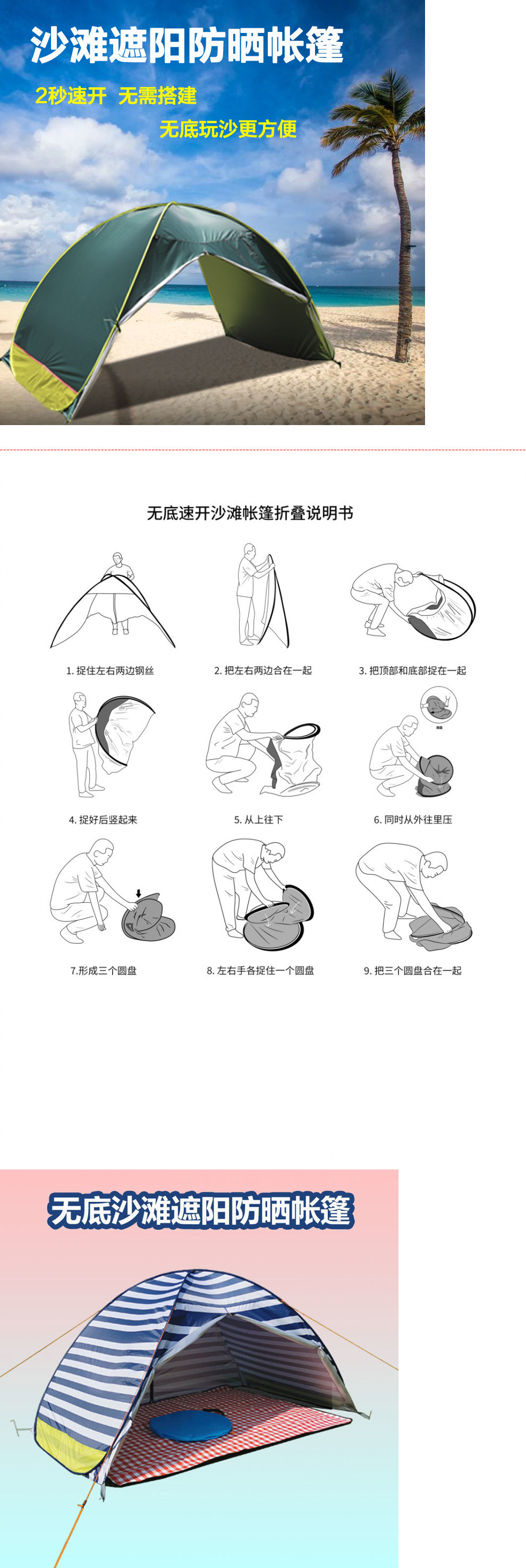해변용 차양 및 자외선 차단 텐트, 완전 자동, 설치 불필요, 2초 속도 개방, 바닥 없는 간단한 속도 개방 텐트, 배송스토어 가기