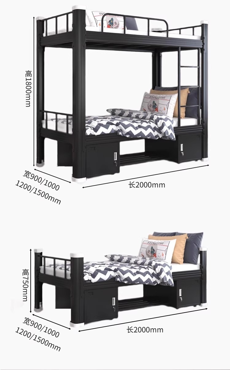 두꺼운 이층침대, 직원기숙사 철제침대, 학생아파트 높낮이침대, 더블 철제침대