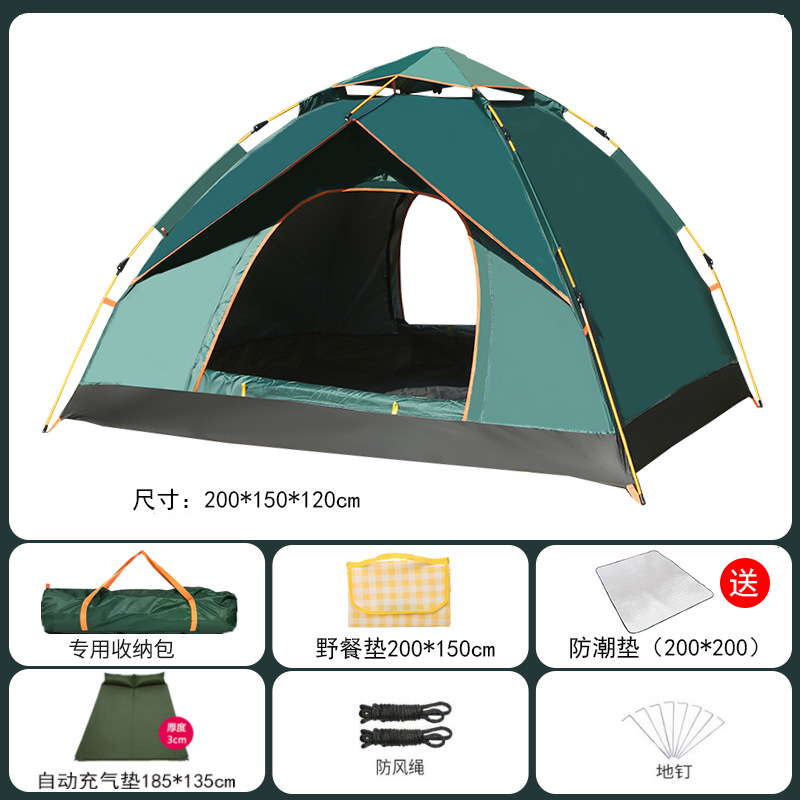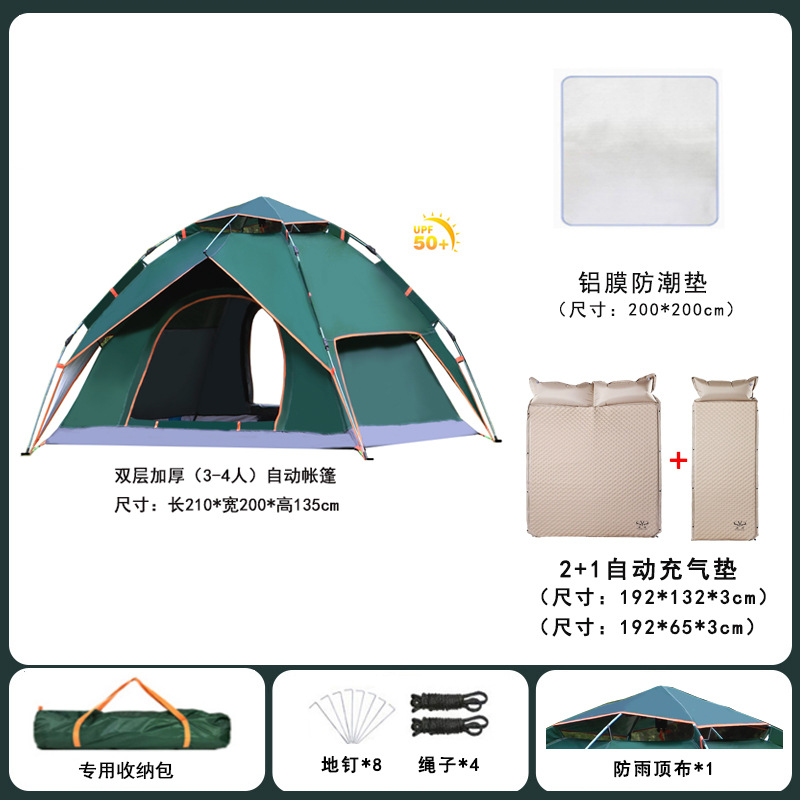 • 자동 2인용 짙은 녹색 + 방습 매트 + 피크닉 매트 + 자동 팽창식 매트 업그레이드 및 두꺼워진 버전