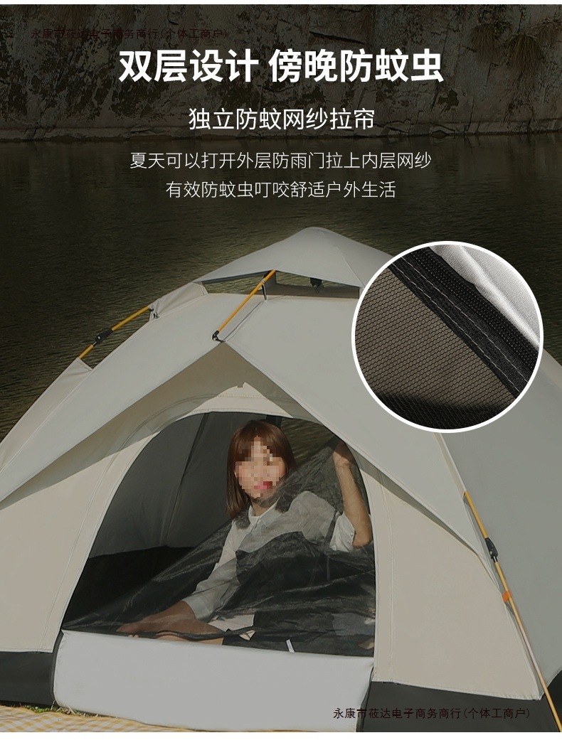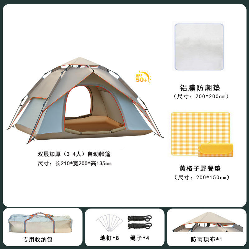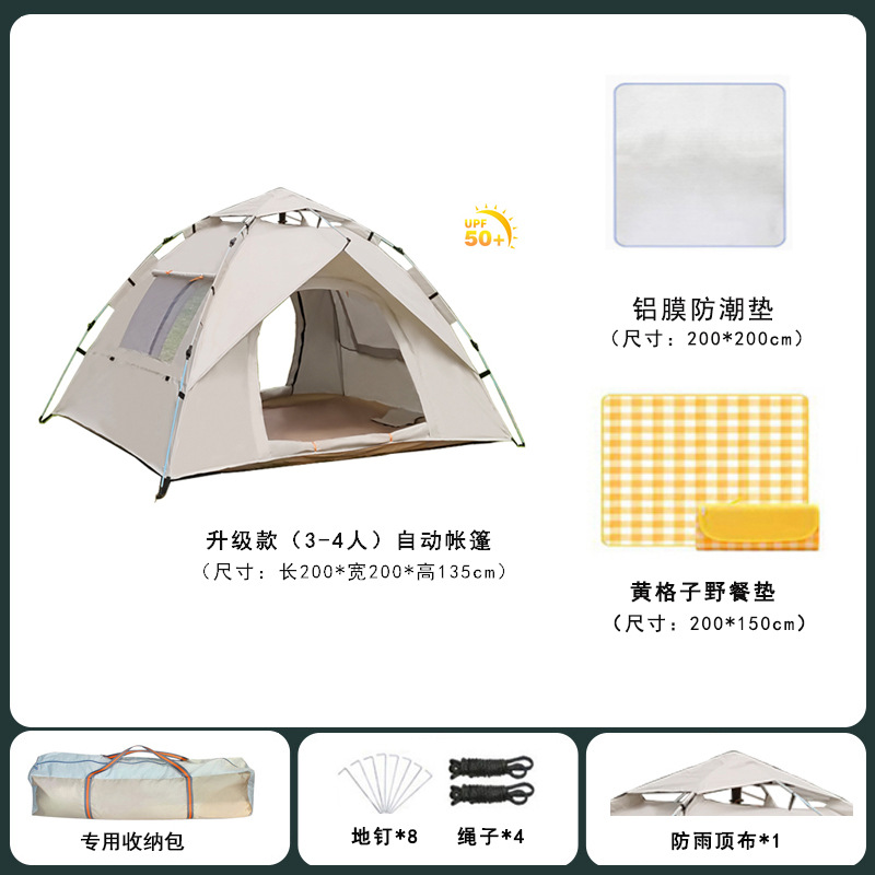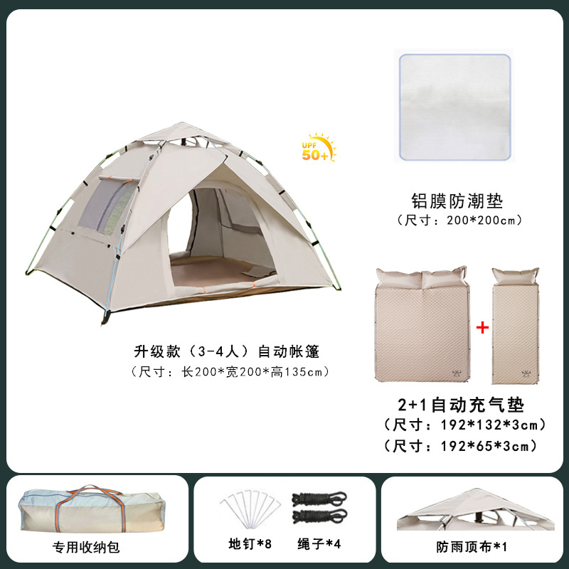 • 오토매틱 2인용 베이지 [문 2개, 창문 2개] + 방습쿠션 + 자동공기주입쿠션, 업그레이드된 두꺼워진 버전