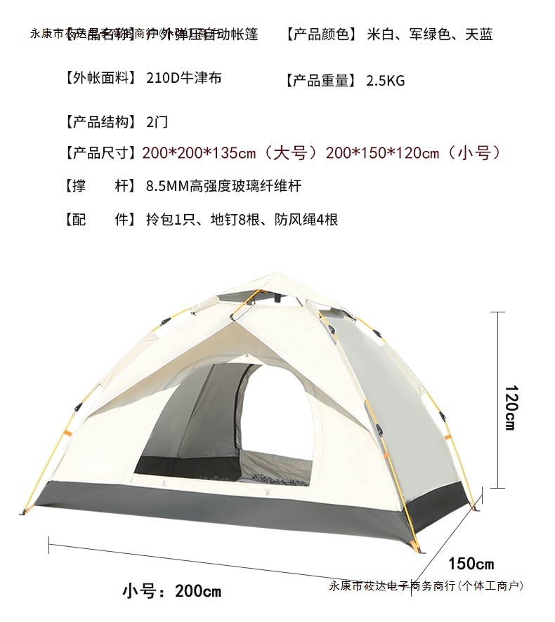 자동 캠핑 장비, 실내 접이식 피크닉 휴대용 용품, 야외 방수 텐트, 무료 배송스토어 가기