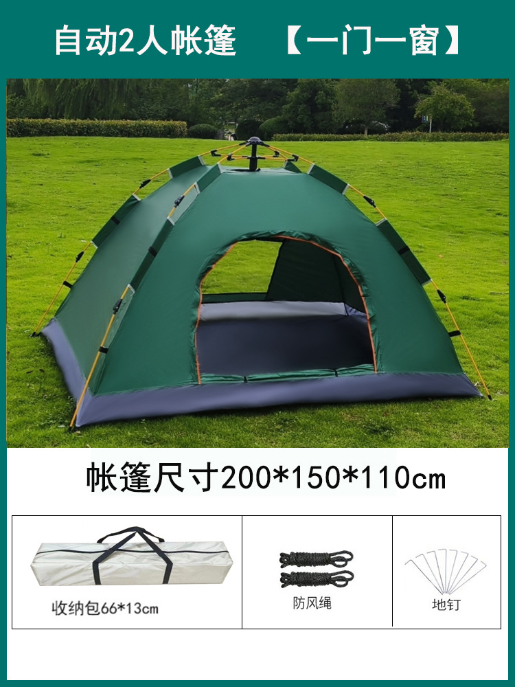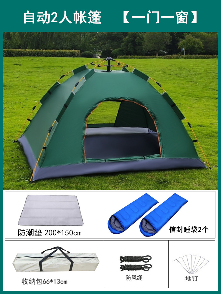 • 2인용 자동 짙은 녹색 + 방습 패드 + 봉투 침낭 2개 [문 1개, 창문 1개]