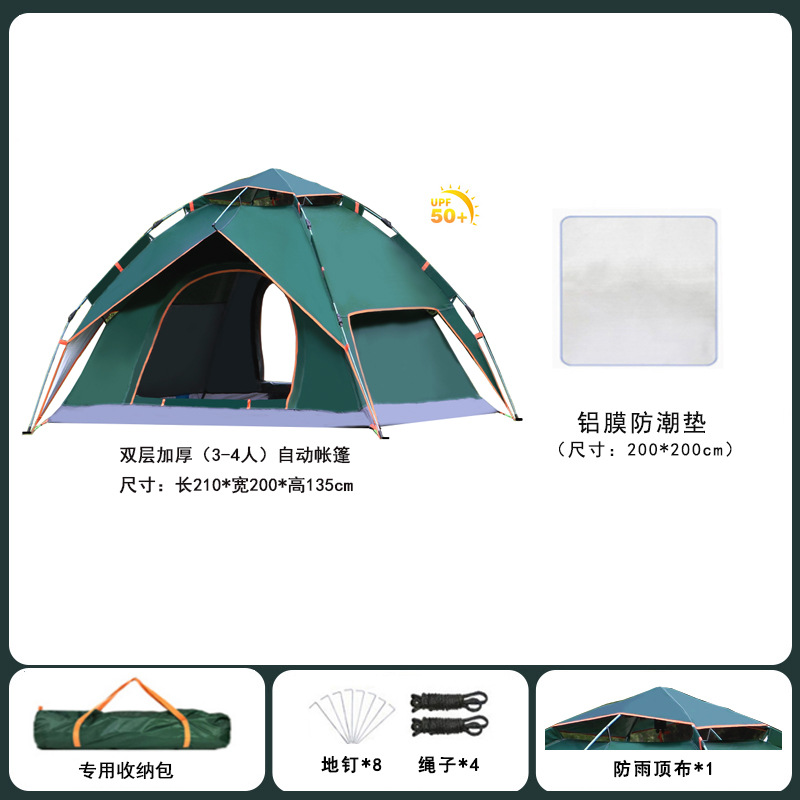 • [이중방수] 3~4인용 자동 짙은 녹색 + 방습패드, 업그레이드되고 두꺼워진 버전