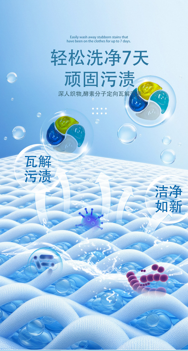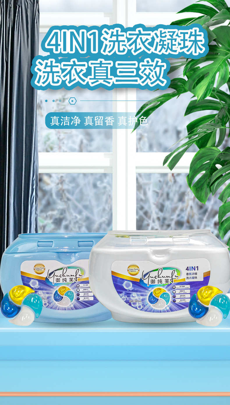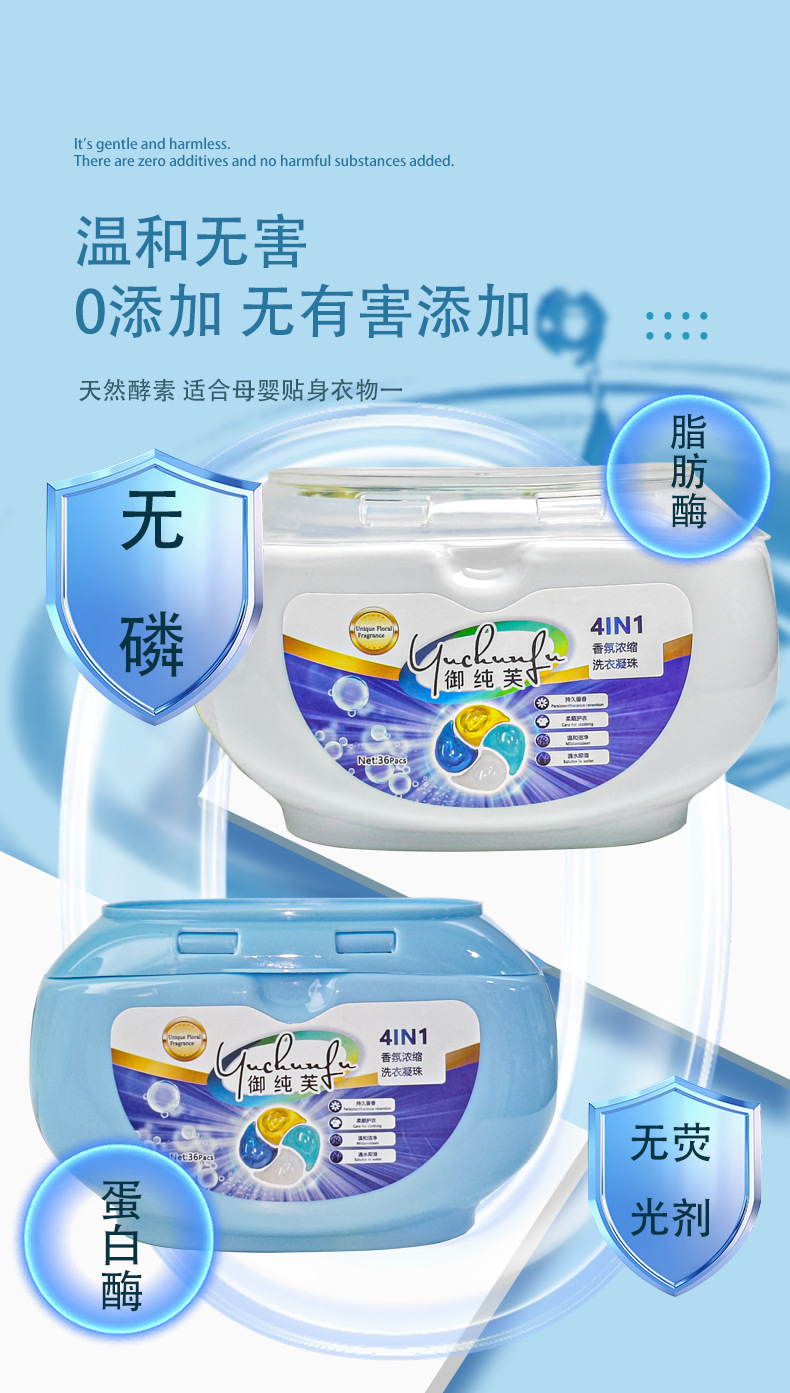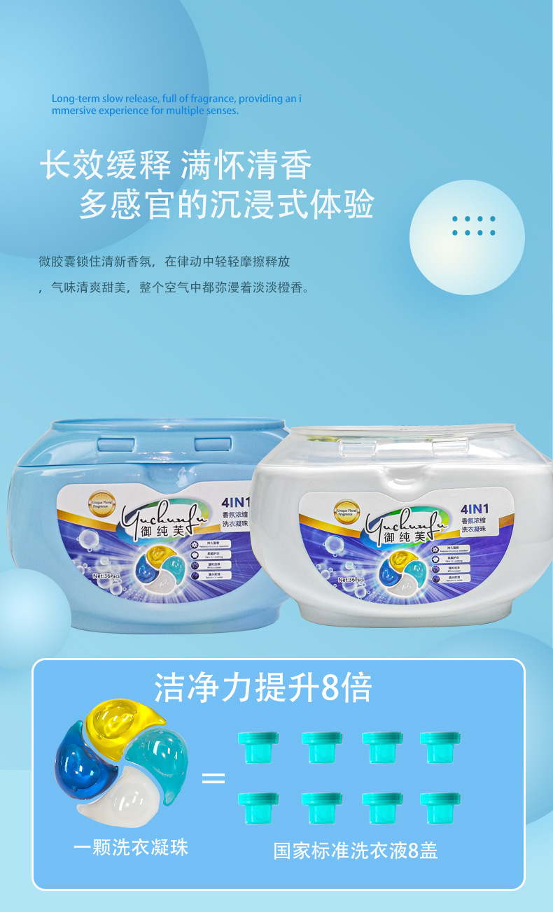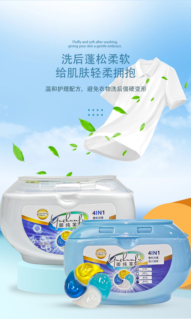 Yuchunfu 15g 4 챔버 세탁 비드 크로스 보더 영어 버전 청소 및 오염 제거 향기 4-in-one 세탁 볼 제조업체스토어 가기