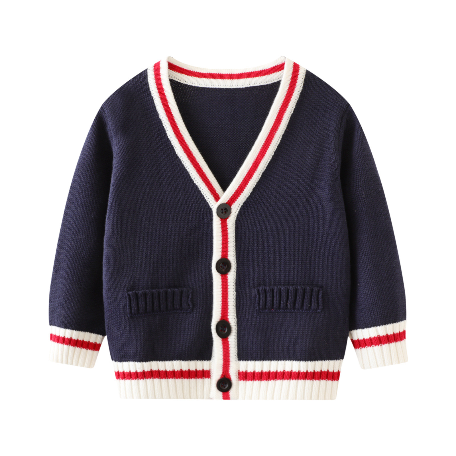 소스 공장에서 제공한 아기 니트 버튼 카디건 스웨터 순면 블루 대학 스타일 니트 재킷