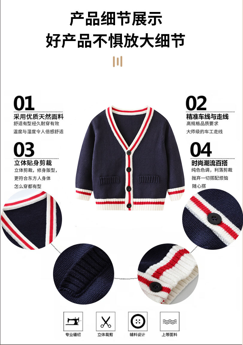 소스 공장에서 제공한 아기 니트 버튼 카디건 스웨터 순면 블루 대학 스타일 니트 재킷스토어 가기