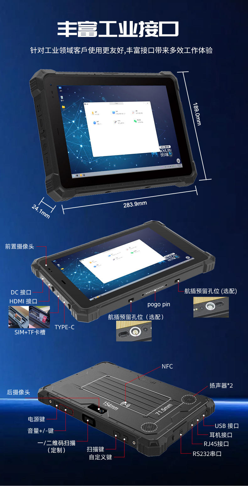 산업용 IP68 고급 보호 기능을 갖춘 완전 강화형 A10R, 지문인식 및 NFC 옵션, 견고한 산업용 3중 보호 태블릿 컴퓨터