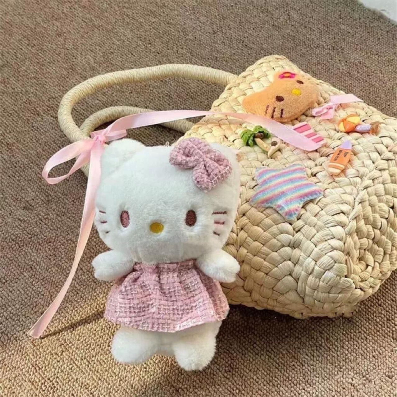 천사 KT 고양이 ins 소녀 키티 귀여운 펜던트 스커트 가방 플러시 펜던트 키 체인 인형 선물스토어 가기