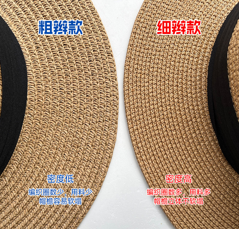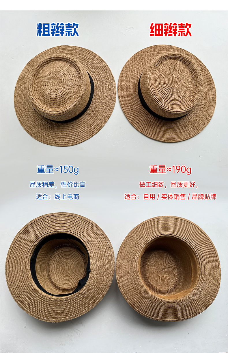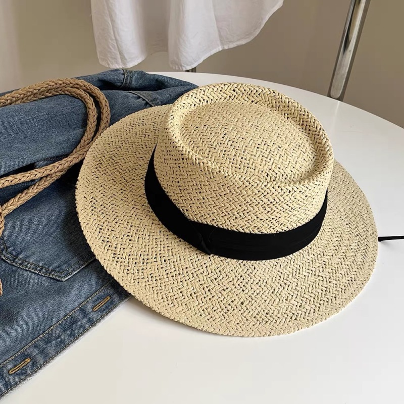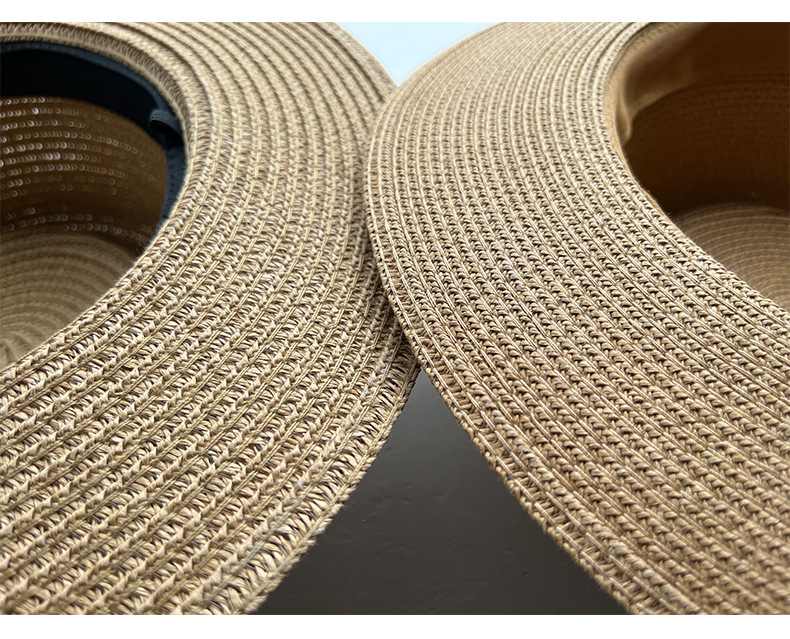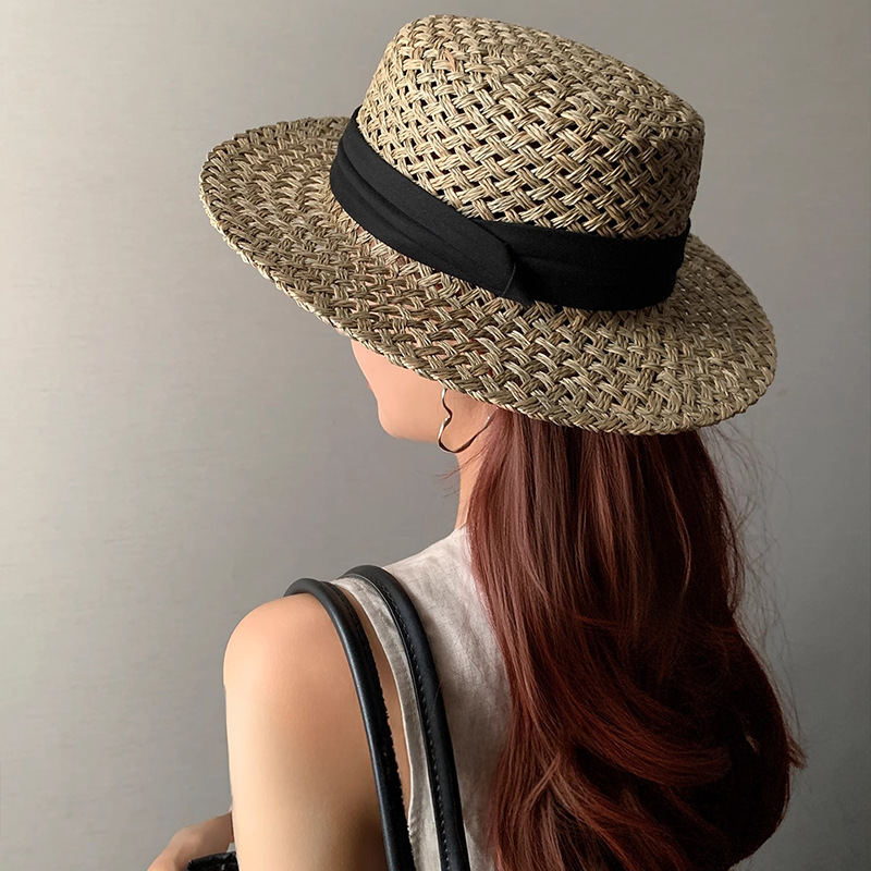 새로운 프랑스 스타일 플랫 탑 밀짚모자 여성용 큰 머리둘레 해변 모자 직조 자외선 차단 여름 모자스토어 가기