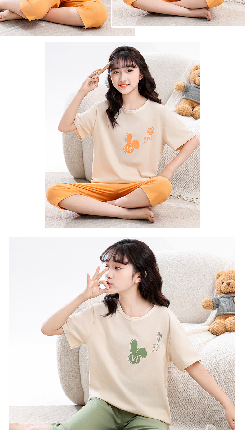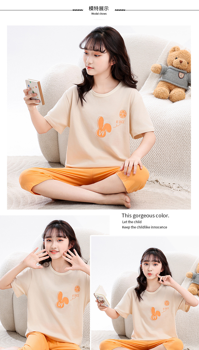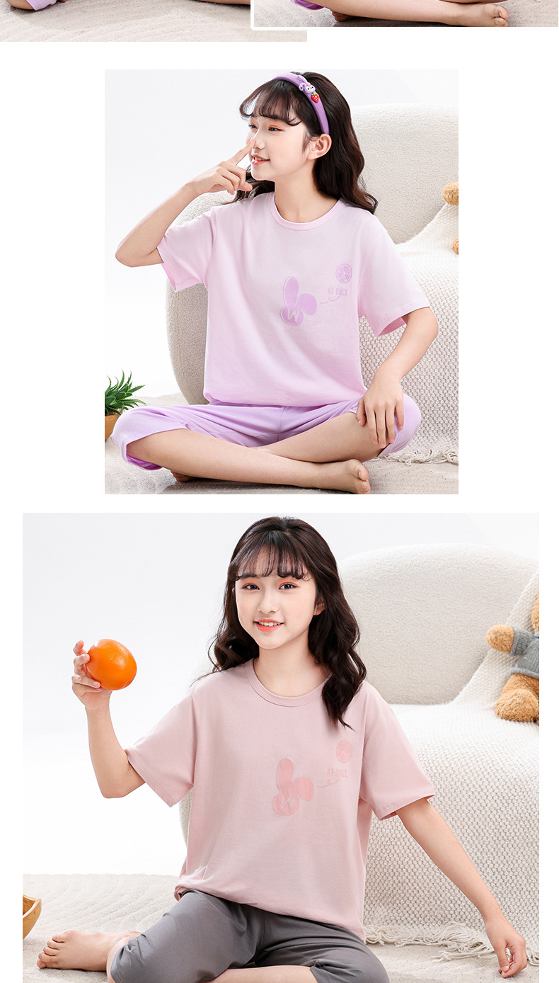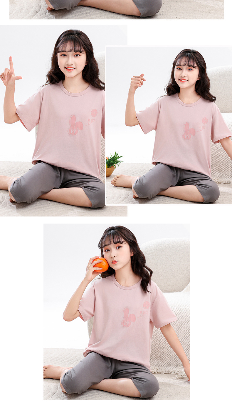 어린이 잠옷, 여아 홈웨어, 순면 반팔, 큰 아이들을 위한 얇은 여아 세트, 어린이 여름 통기성 귀여운 의류스토어 가기