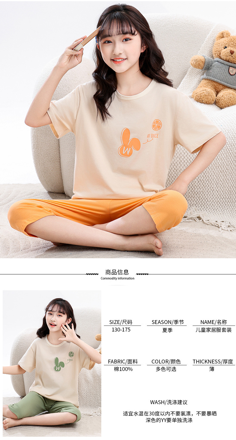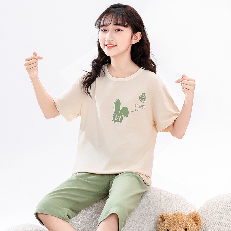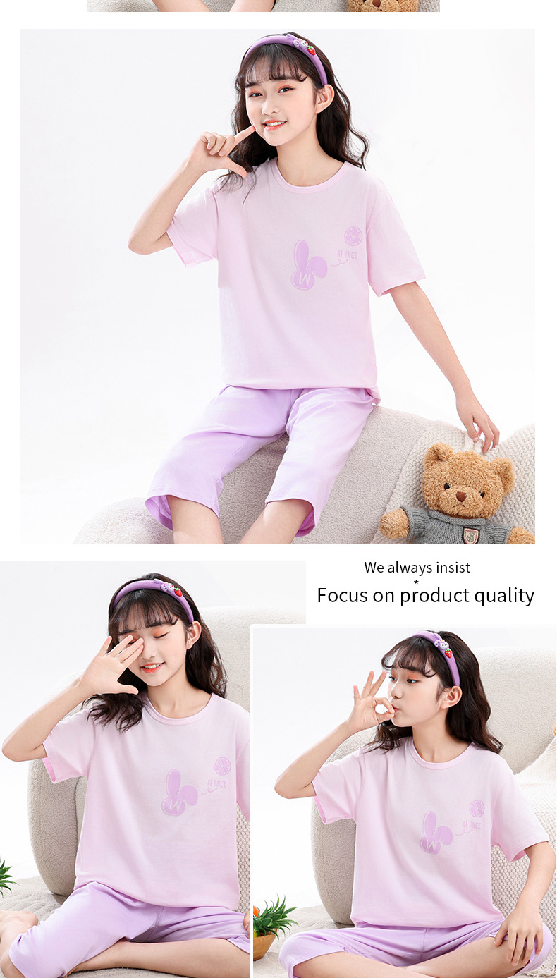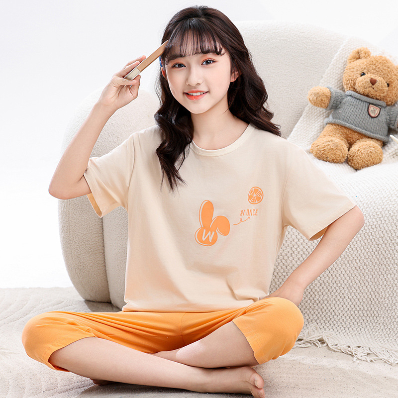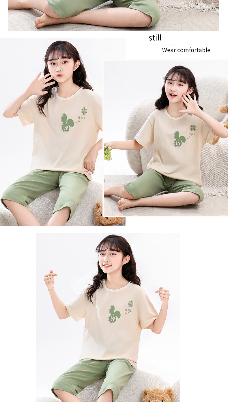 어린이 잠옷, 여아 홈웨어, 순면 반팔, 큰 아이들을 위한 얇은 여아 세트, 어린이 여름 통기성 귀여운 의류스토어 가기